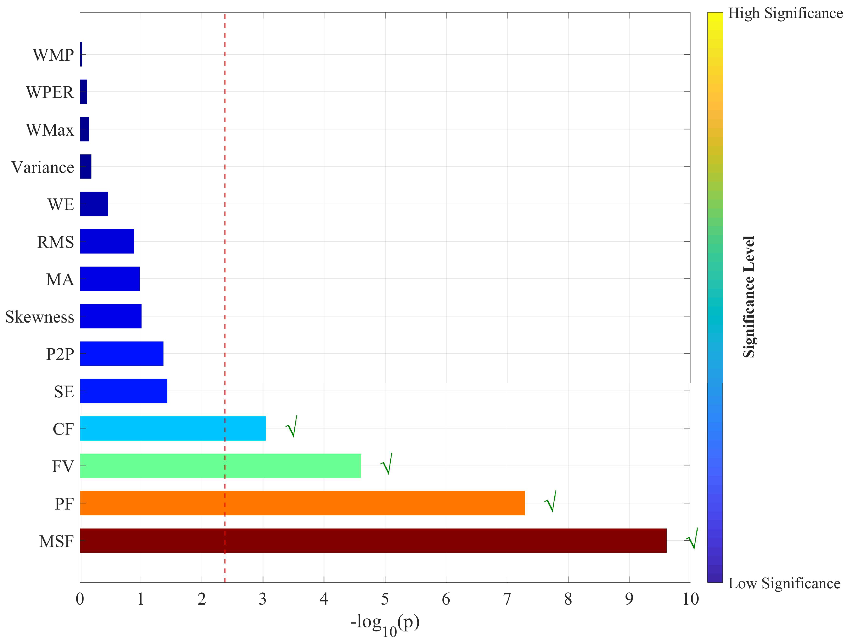34]. This method emphasizes discriminability but ignores stability and separability, which can lead to inconsistent selection under noise perturbations. This strategy represents a widely adopted significance-driven feature ranking paradigm commonly used in traditional track-circuit and machinery fault diagnosis studies.