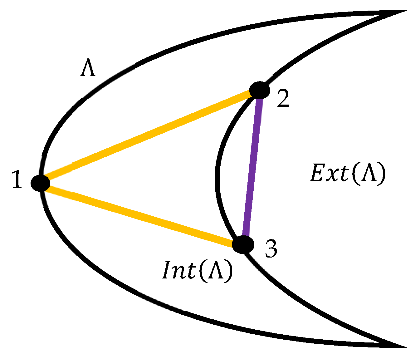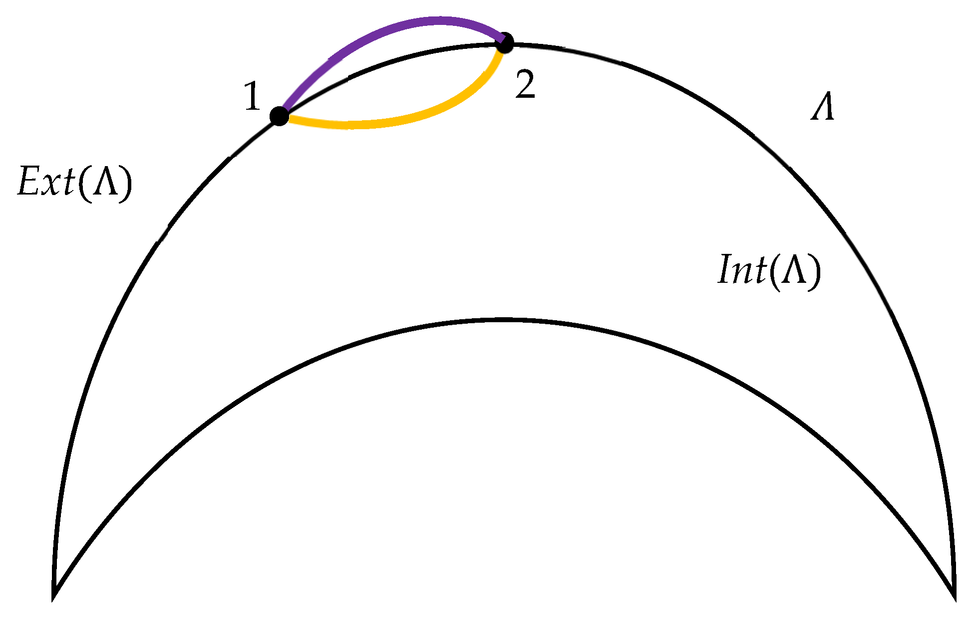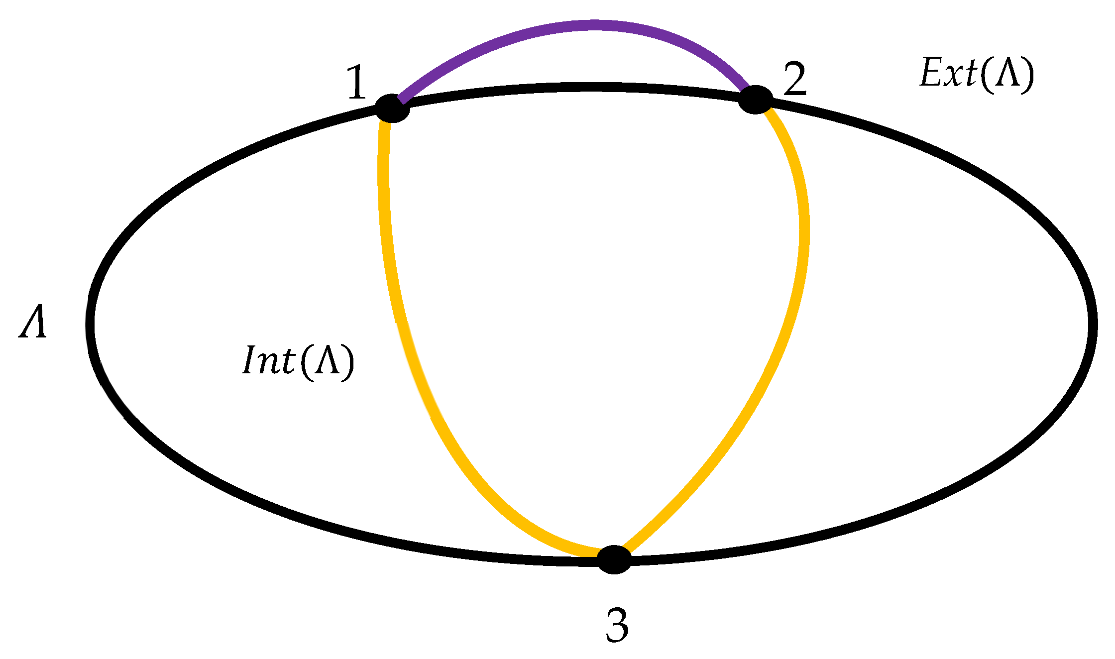 Theorem 3. Let Λ be a Jordan curve in the plane and let be a set of distinct points on For every unordered pair , assume that one selects exactly one connecting arc of one of the three types: