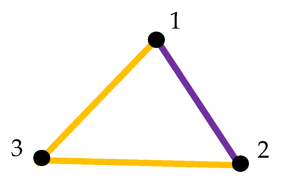 it is true that:That is, every two-coloring of the six connecting arcs among six points on Λ yields a monochromatic triangle. The group theory example illustrating Theorem 1 is supplied in Appendix A. 2.2. Topological Invariance of the Introduced Coloring Scheme