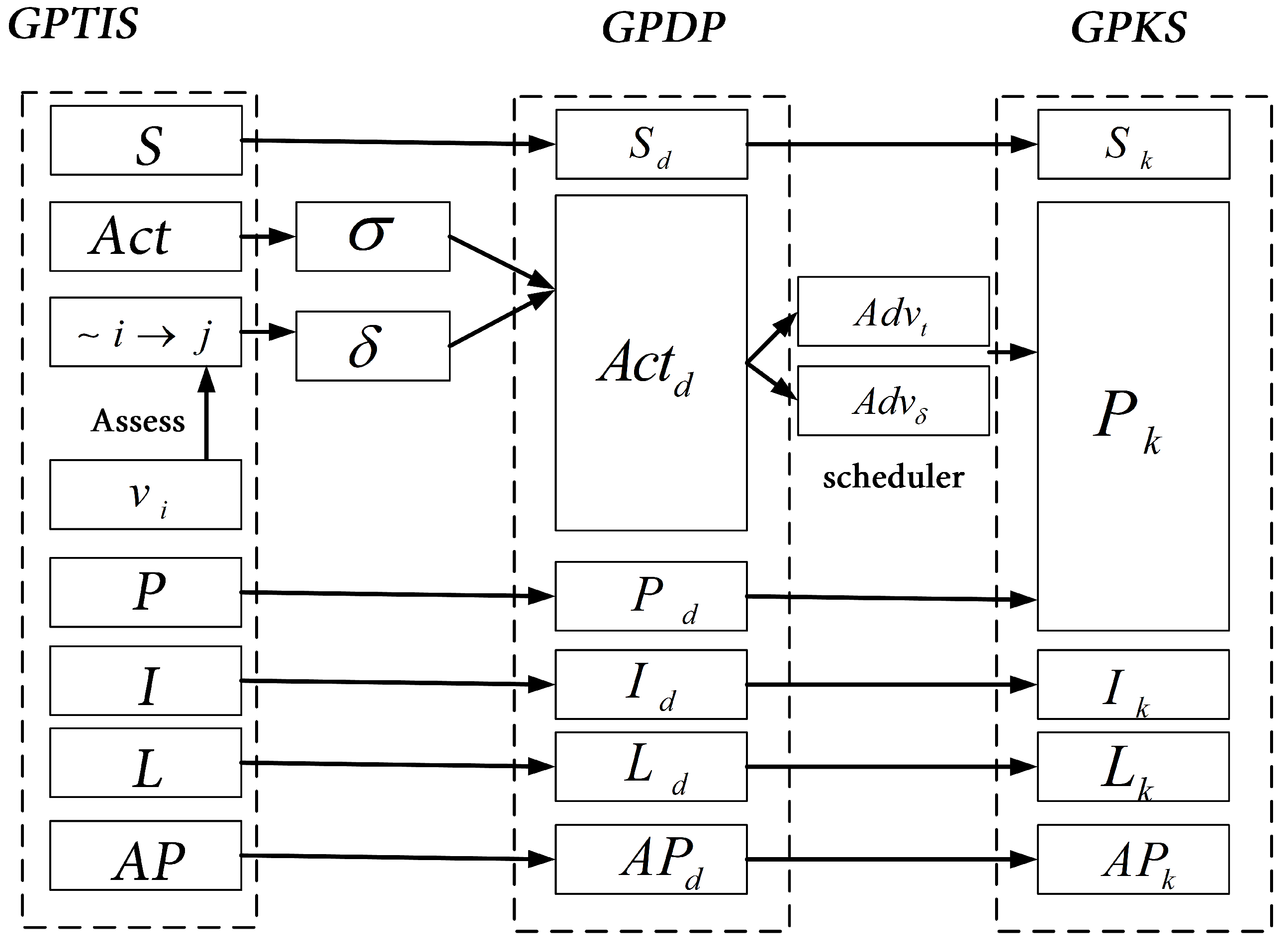 A Generalized Possibilistic Trust Interpreted System (GPTIS) is an 8-tuple M = ( S , A c t , P , I , L , A P , v i , i j ) consisting of n agents, where the definitions of S, A c t , I, and v i are the same as before, defined in VIS (see Definition 7). The main distinction between VIS and GPTIS lies in the fact that in GPTIS, there are four new tuples, P, L, A P , and i j . The definition is given as follows: