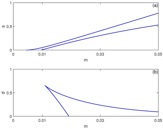 It can be seen that the first Hopf condition (Equation (15)) is never satisfied when , so Hopf bifurcations do not occur in that case.