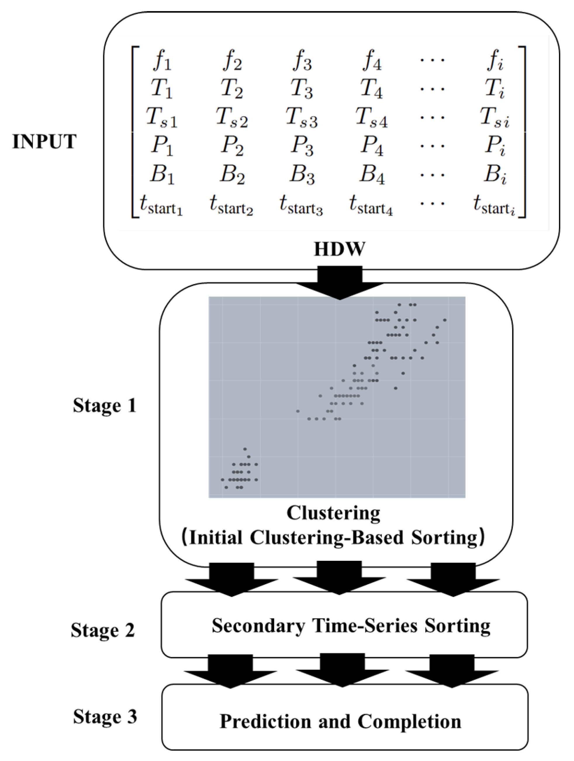 | Input: Stage 2 sorted HDW sequences ; ; ARIMA(1,1,1); ; . Output: Completed HDW sequences . 1. Lost Signal Identification: