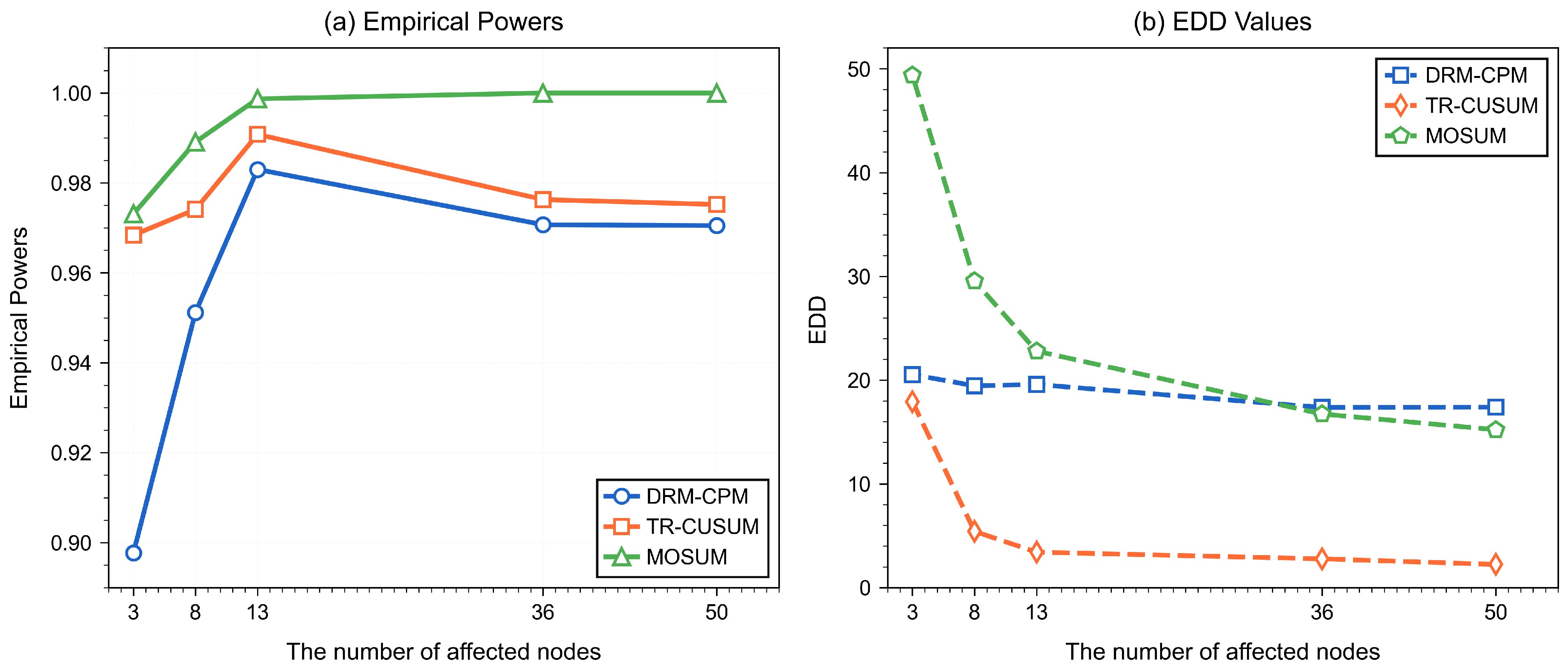 | DRM-CPM | R-CUSUM | MOSUM | DRM-CPM | TR-CUSUM | MOSUM | ||