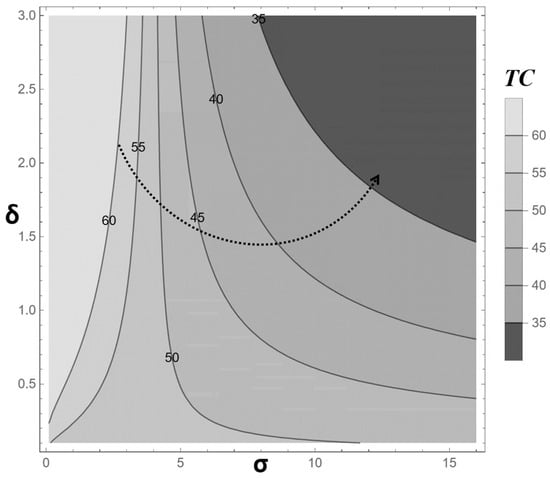 Contour Plot of TC(κ*) at Different Shape and Scale Parameter Values (σ, δ) of the Production System Degradation.