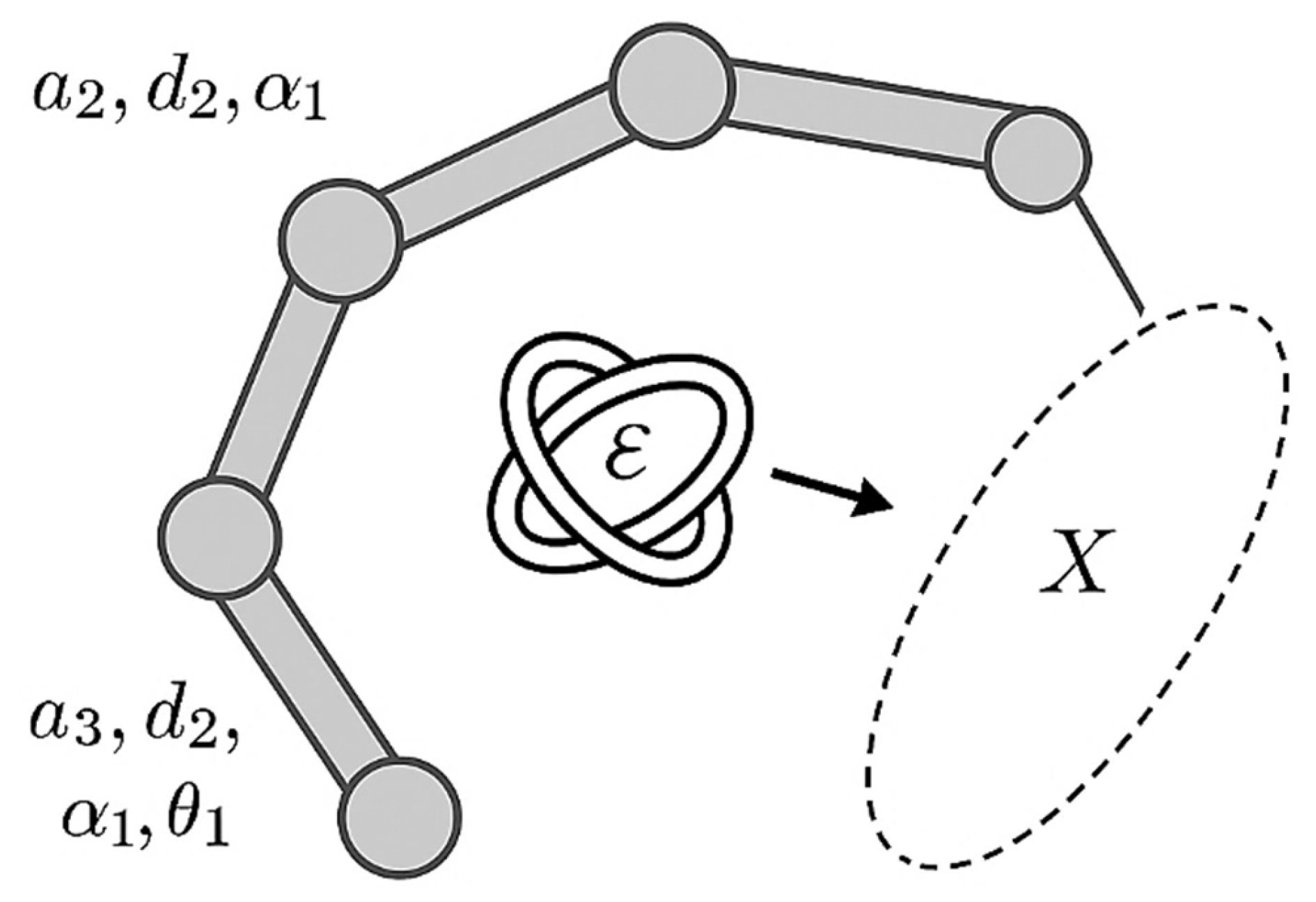 Table 1 summarizes the notation mapping between deterministic kinematics (classical robot modelling) and the stochastic framework developed in this work. The table explicitly links symbols used for nominal robot parameters to their probabilistic counterparts, defines units and coordinate conventions, and eliminates ambiguity when transitioning between analytical derivations (