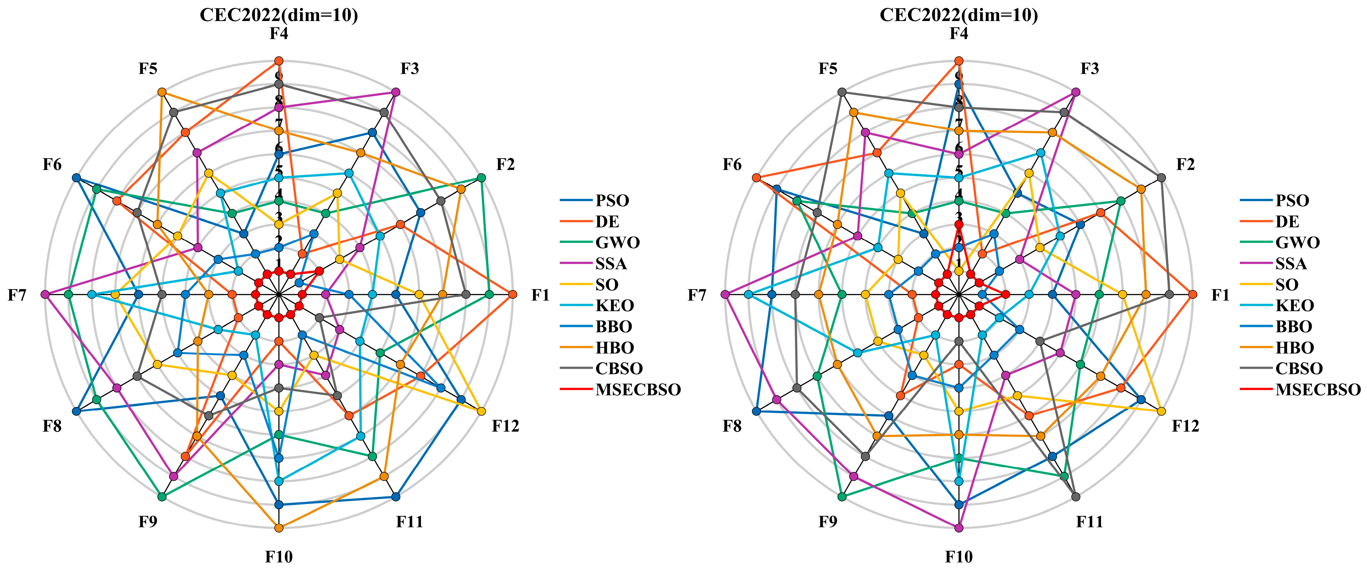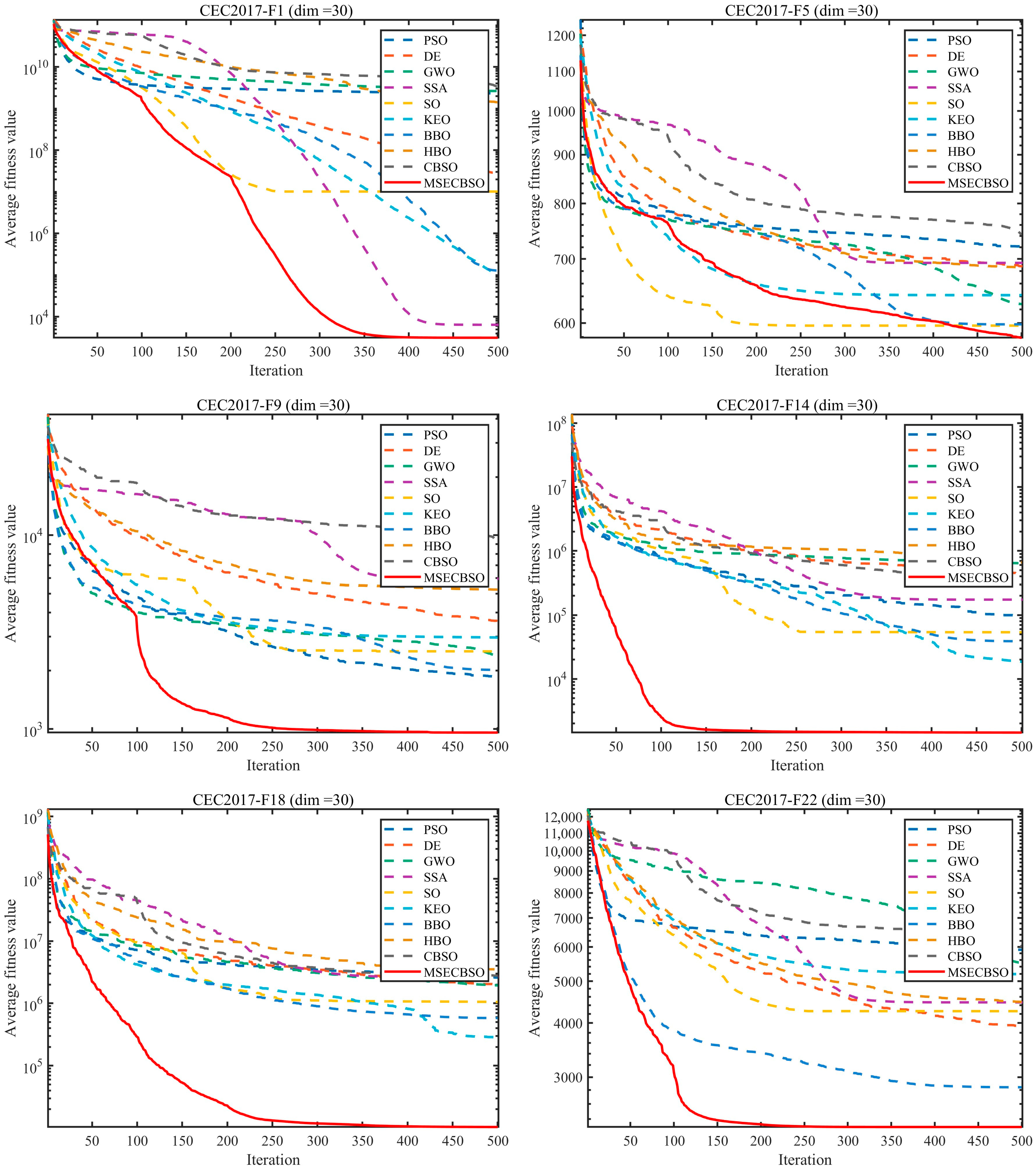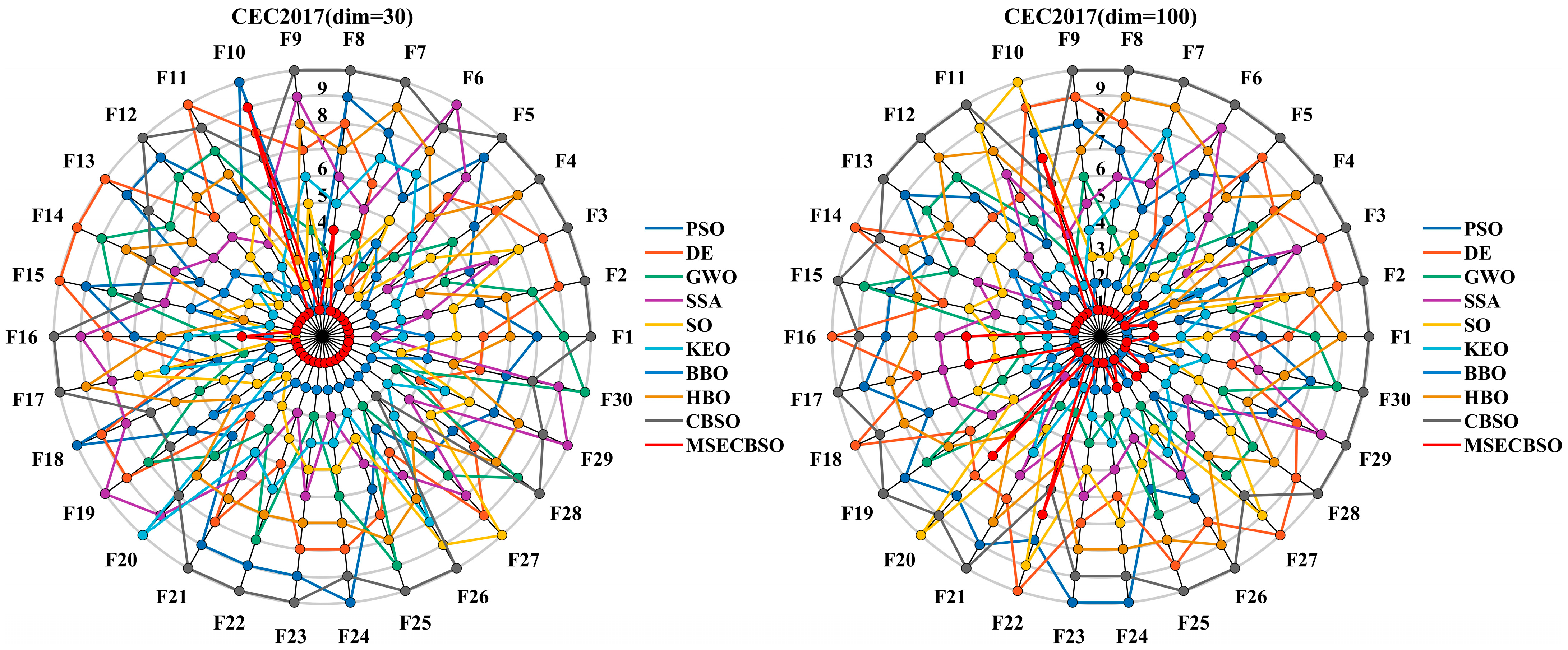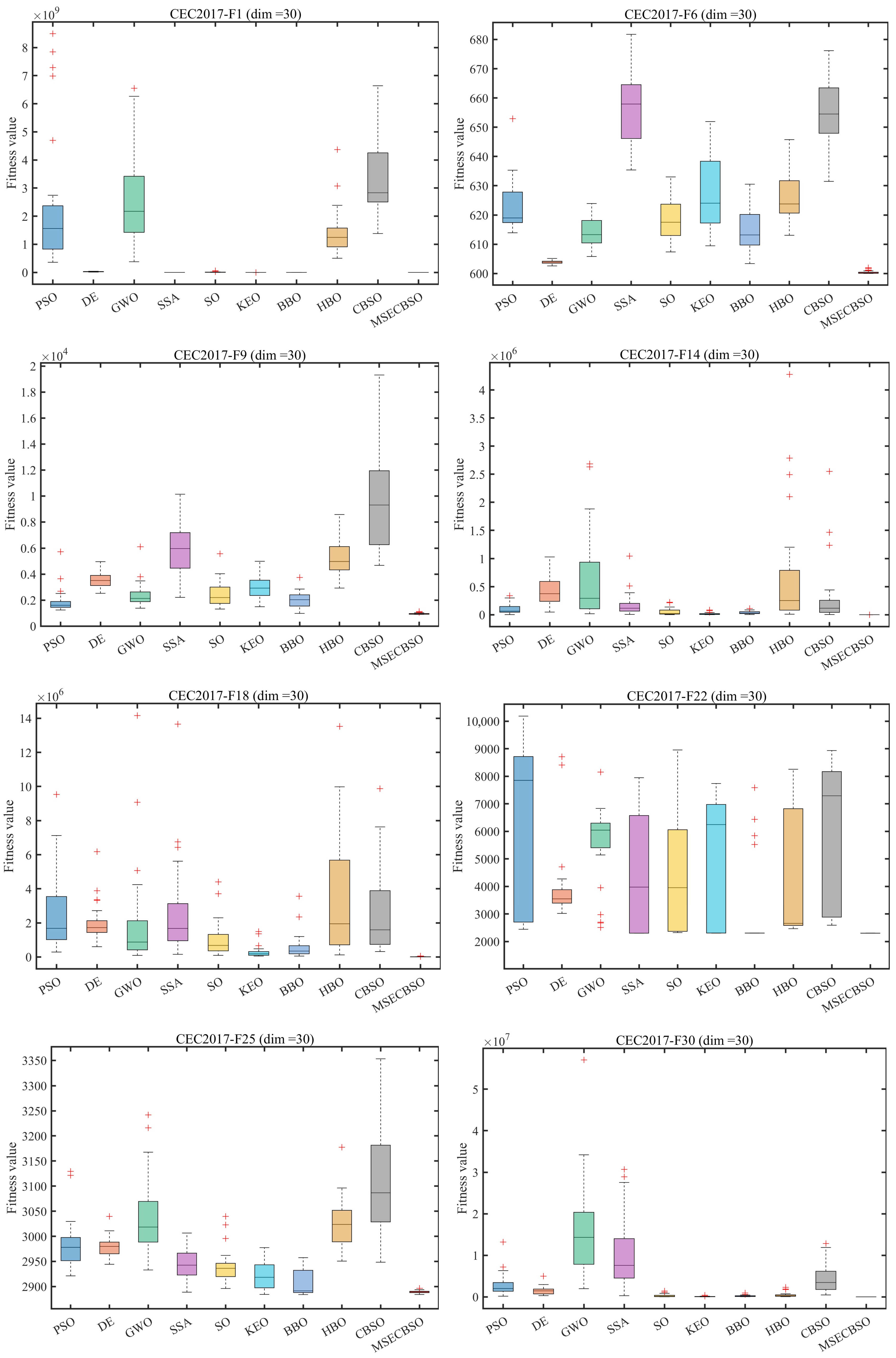 - Extensive experiments on the CEC2017 and CEC2022 benchmark suites, across multiple dimensions and function types, demonstrate that MSECBSO significantly outperforms nine state-of-the-art metaheuristic algorithms in terms of convergence accuracy, speed, and robustness.