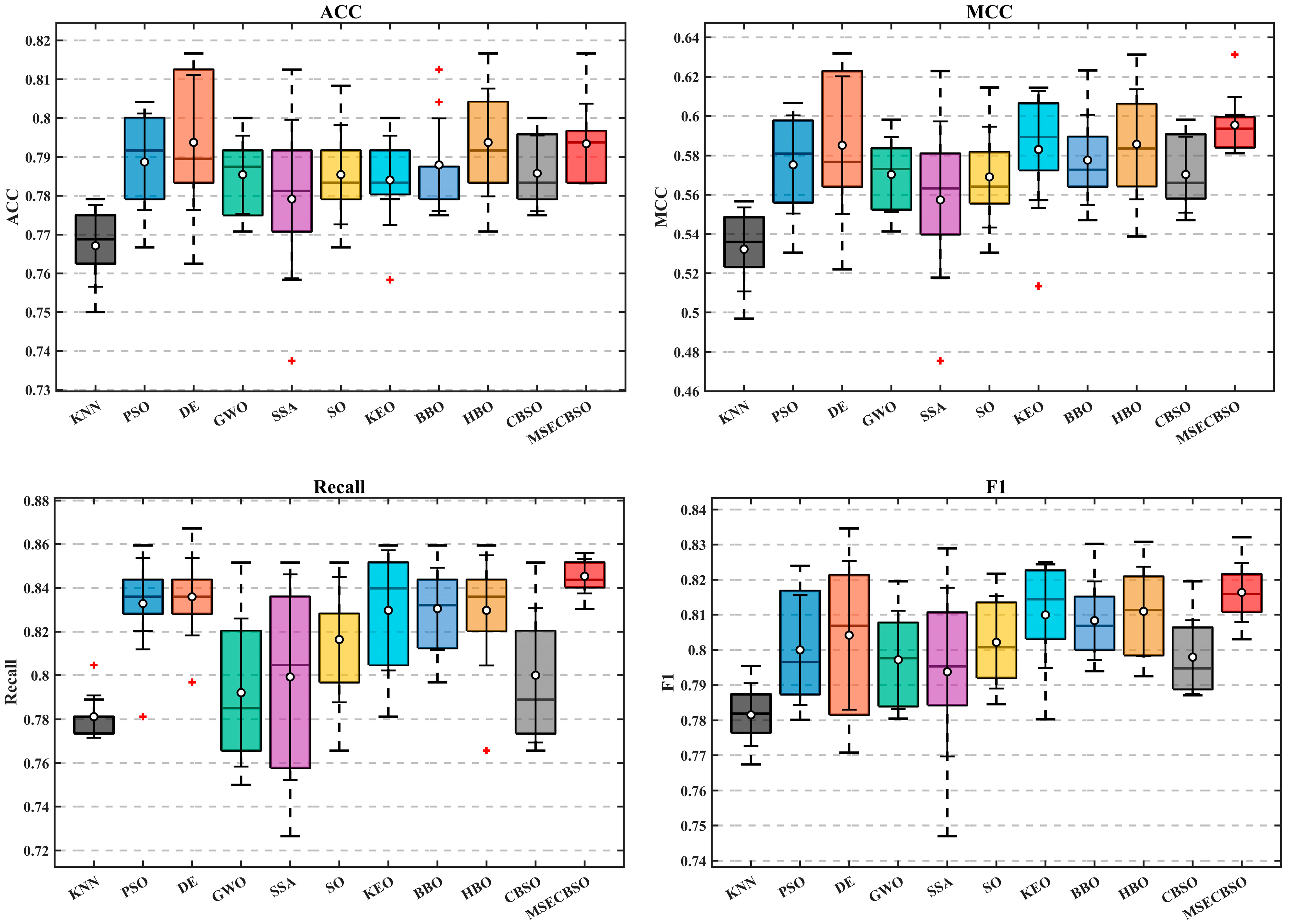 - An MSECBSO-KNN corporate bankruptcy prediction model is constructed by optimizing key KNN hyperparameters, achieving superior multi-class classification performance on the Wieslaw and JPNBDS dataset and validating the practical applicability of MSECBSO.
