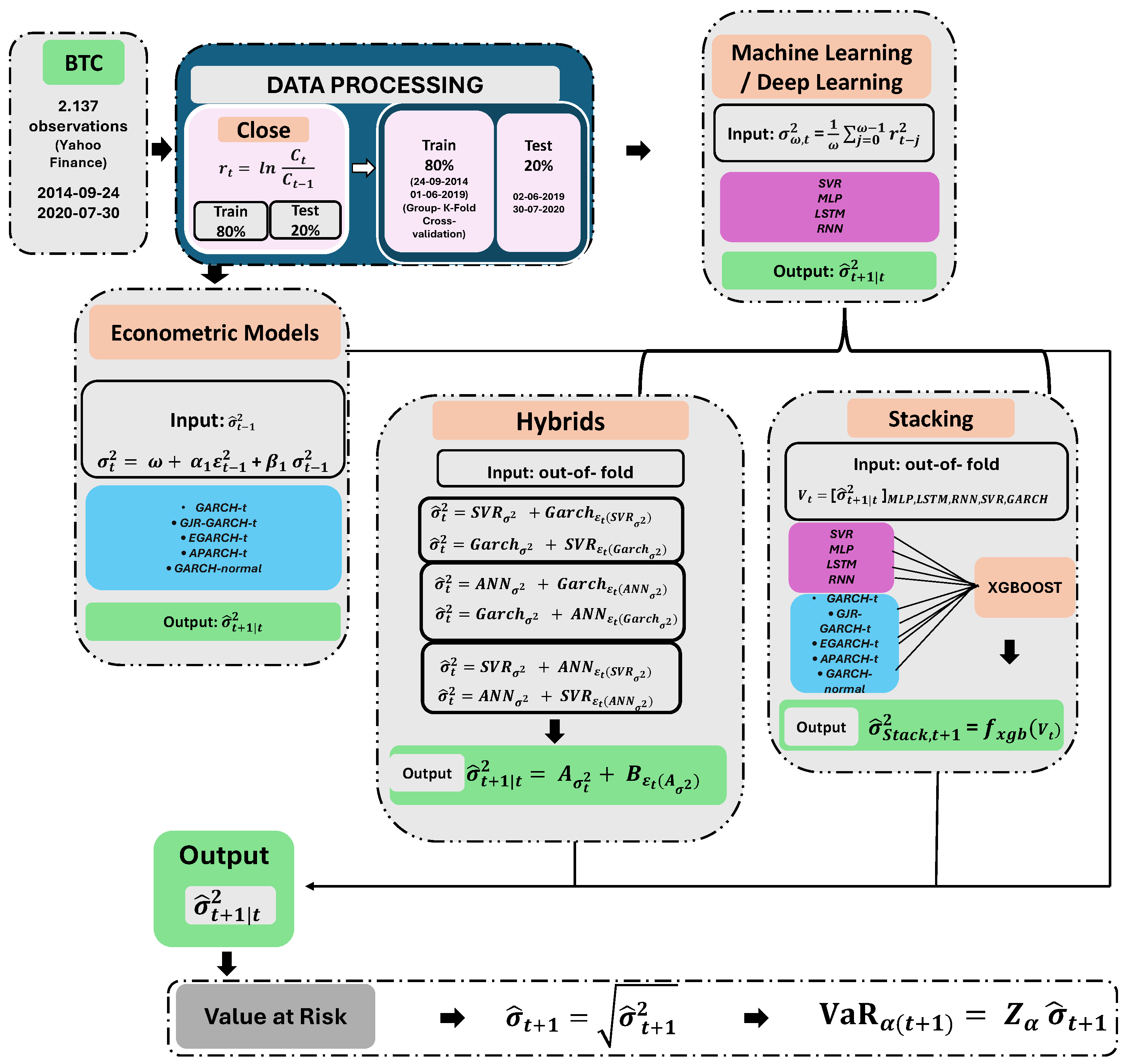 APA StyleRubio, L., Alba, K. V., Velasquez, C. E., & Ramos, F. R. (2026). Stacked ML-GARCH for Bitcoin Risk Forecasting: A Novel Ensemble Approach for Superior Value-at-Risk Estimation. Mathematics, 14(4), 624. https://doi.org/10.3390/math14040624