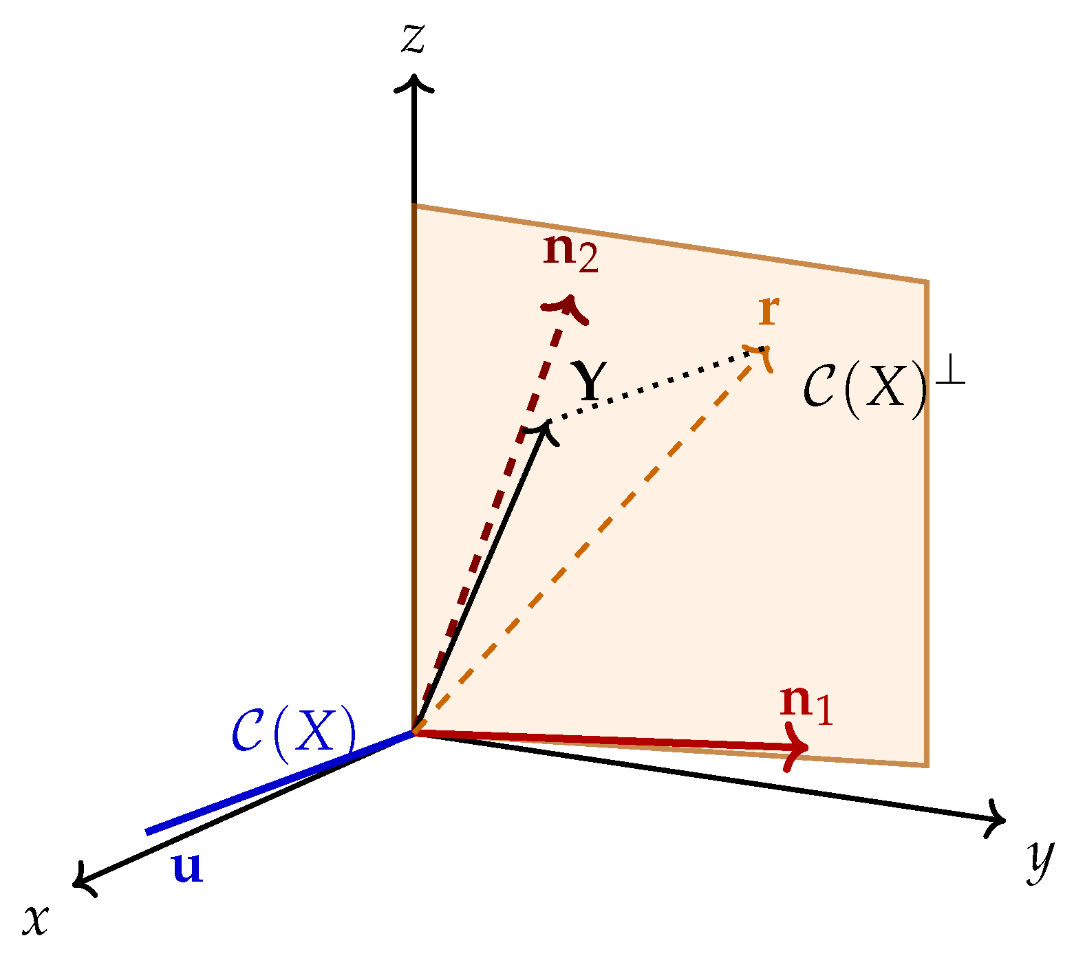 and a part orthogonal to it. This algebraic formulation is standard, but it can obscure the underlying geometry that governs the behavior of the residuals, and inversion-based formulas can be fragile in high-dimensional or nearly singular regimes [