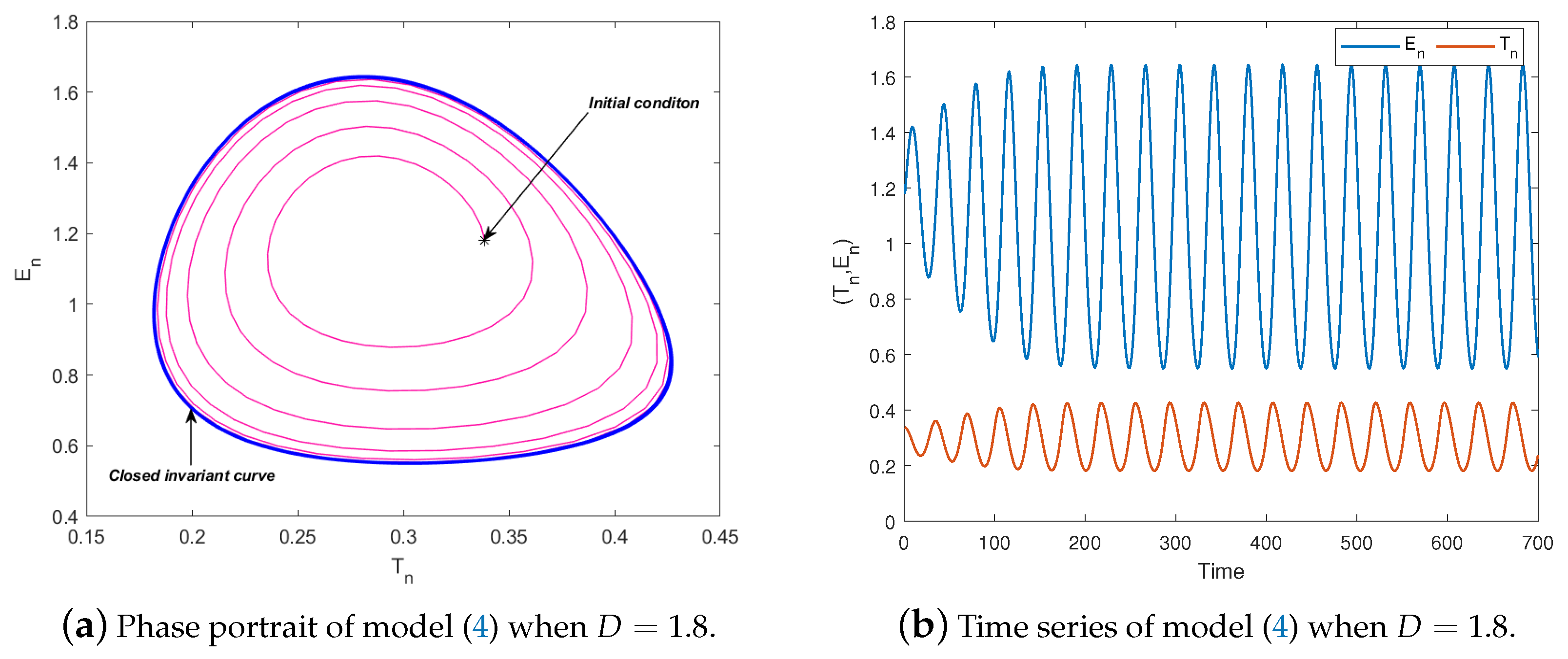 5.1. Neimark–Sacker Bifurcation Simulation