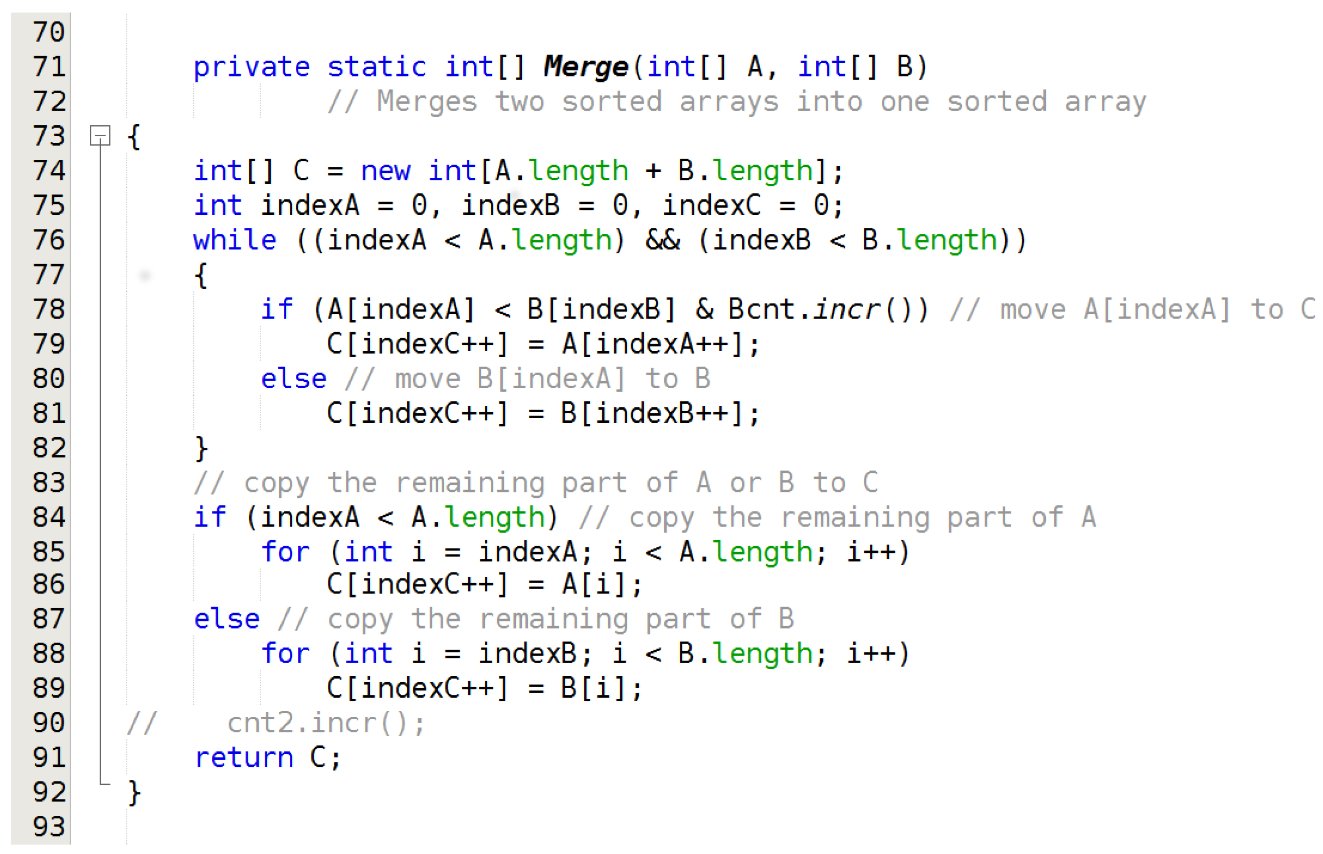 A typical measure of the running time of is the number of comparisons of keys, which for brevity I call comps, that it performs while sorting array . Since no comps are performed outside , the running time of can be computed as the sum of numbers of comps performed by all calls to during the execution of .