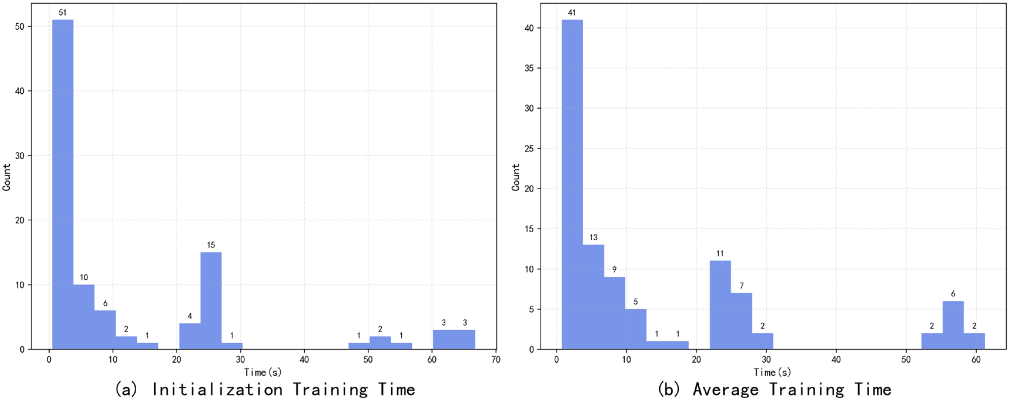 - Second-Stage Waiting Mechanism: Empirical observation reveals that a cluster of clients may complete training shortly after the buffer is full. To harness these “following” clients, the second-stage wait is triggered upon completion of the first stage. is implemented as a short, resettable timer. Its core logic is to dynamically extend the collection window: whenever a new client update arrives within the current T2 window, the timer is reset. This creates a rolling window that persists as long as clients complete in close temporal succession, effectively capturing a naturally occurring cohort of clients. The stage concludes when a full duration elapses without any new arrival, signaling that the trailing cluster has been fully collected. The settings of are critical; an optimal value must balance the benefit of collecting additional clients against the cost of added latency.