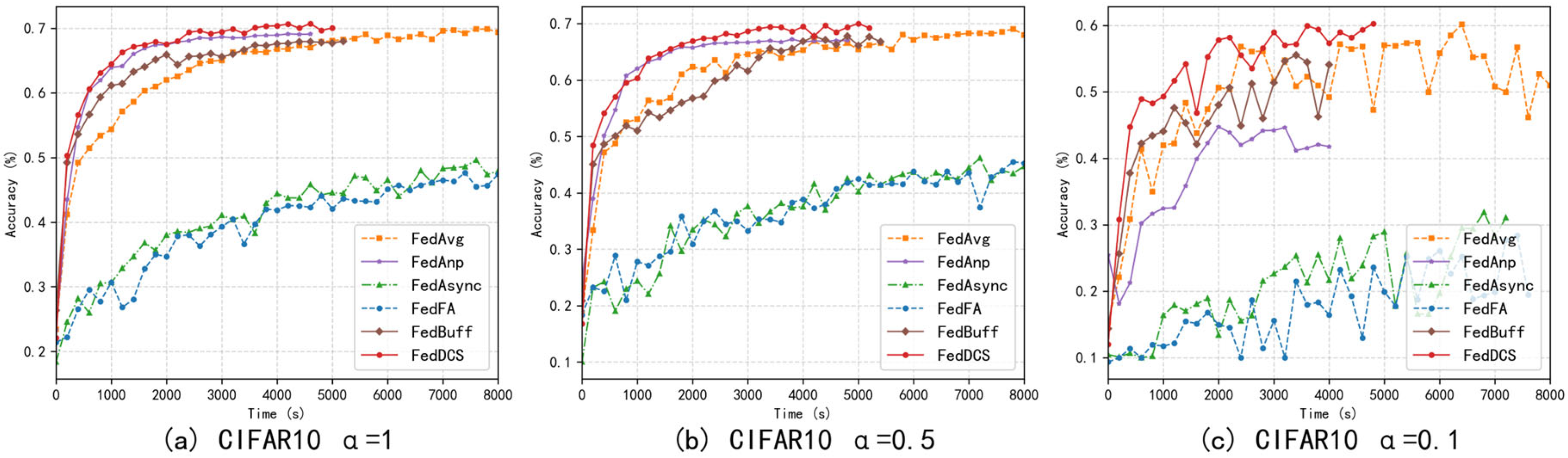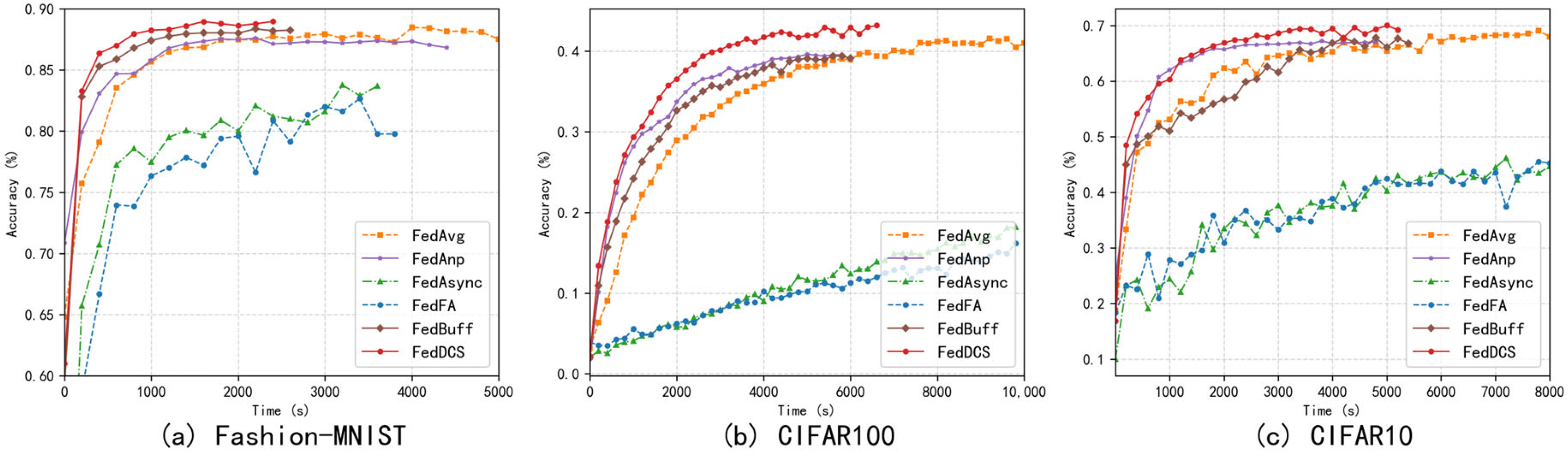 | Dataset | Metrics * | FedAvg | FedAnp | FedAsync | FedFa | FedBuff | FedDCS |