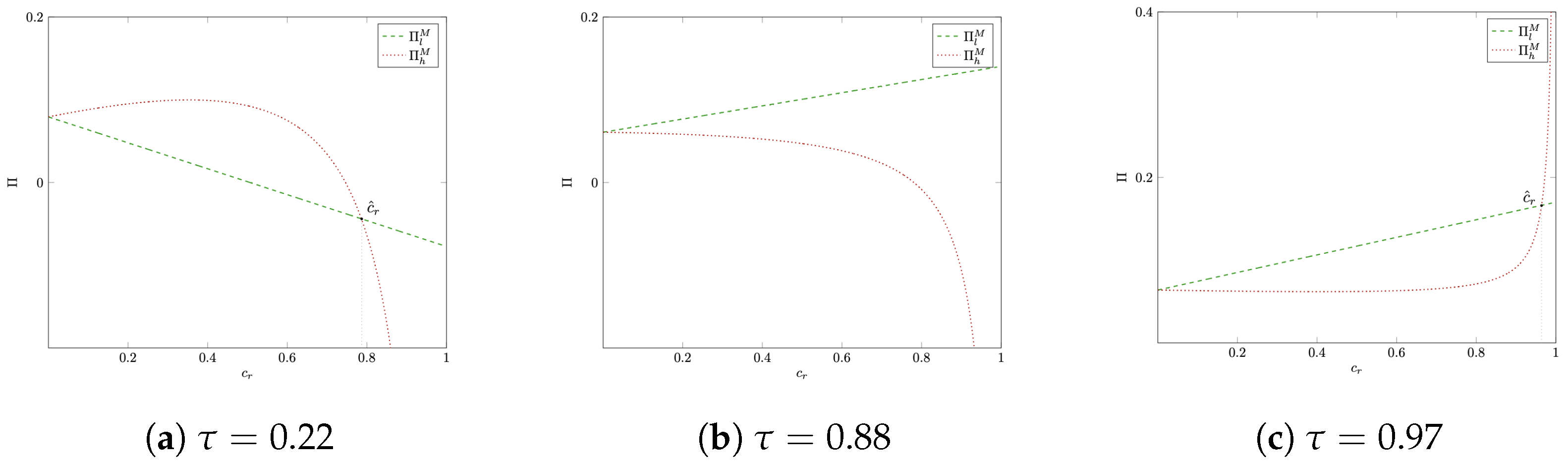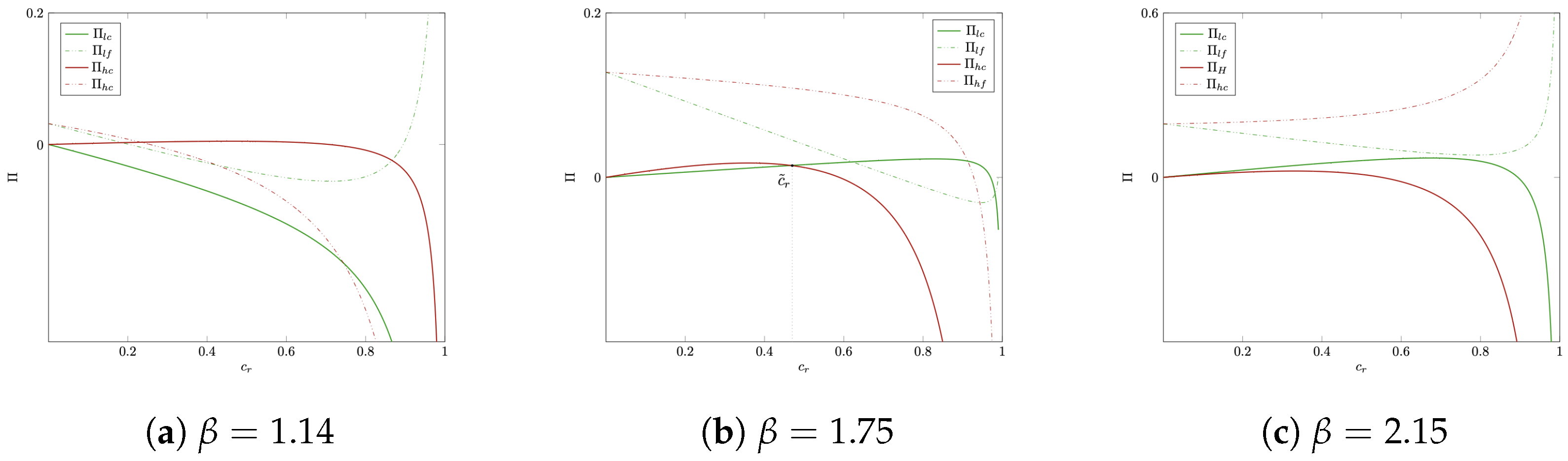 For the FRFI insurer, the optimal FRFI premium is given by And the corresponding demands for LRFI and FRFI areandrespectively. The corresponding equilibrium profits of the LRFI and FRFI insurers, denoted by and respectively, are derived in Appendix A. The Insurers’ Optimal Premiums. Having analyzed the equilibrium outcomes under both low-priced and high-priced LRFI strategies, we now derive the optimal premiums for both insurers by comparing their profits across the two LRFI pricing strategies.