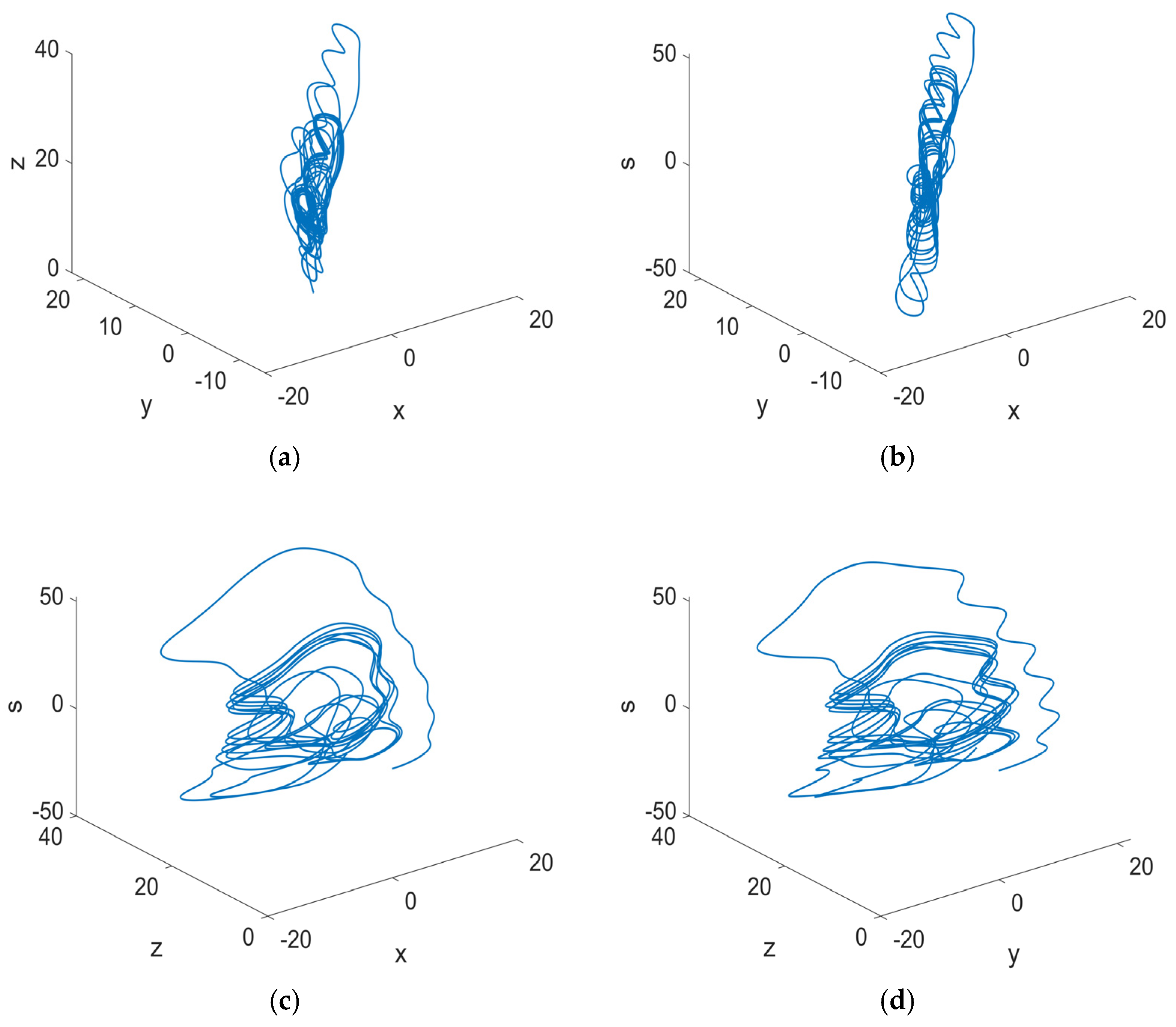 Figure 3, the new four-dimensional system incorporating state variables still exhibits a clear chaotic phase structure.