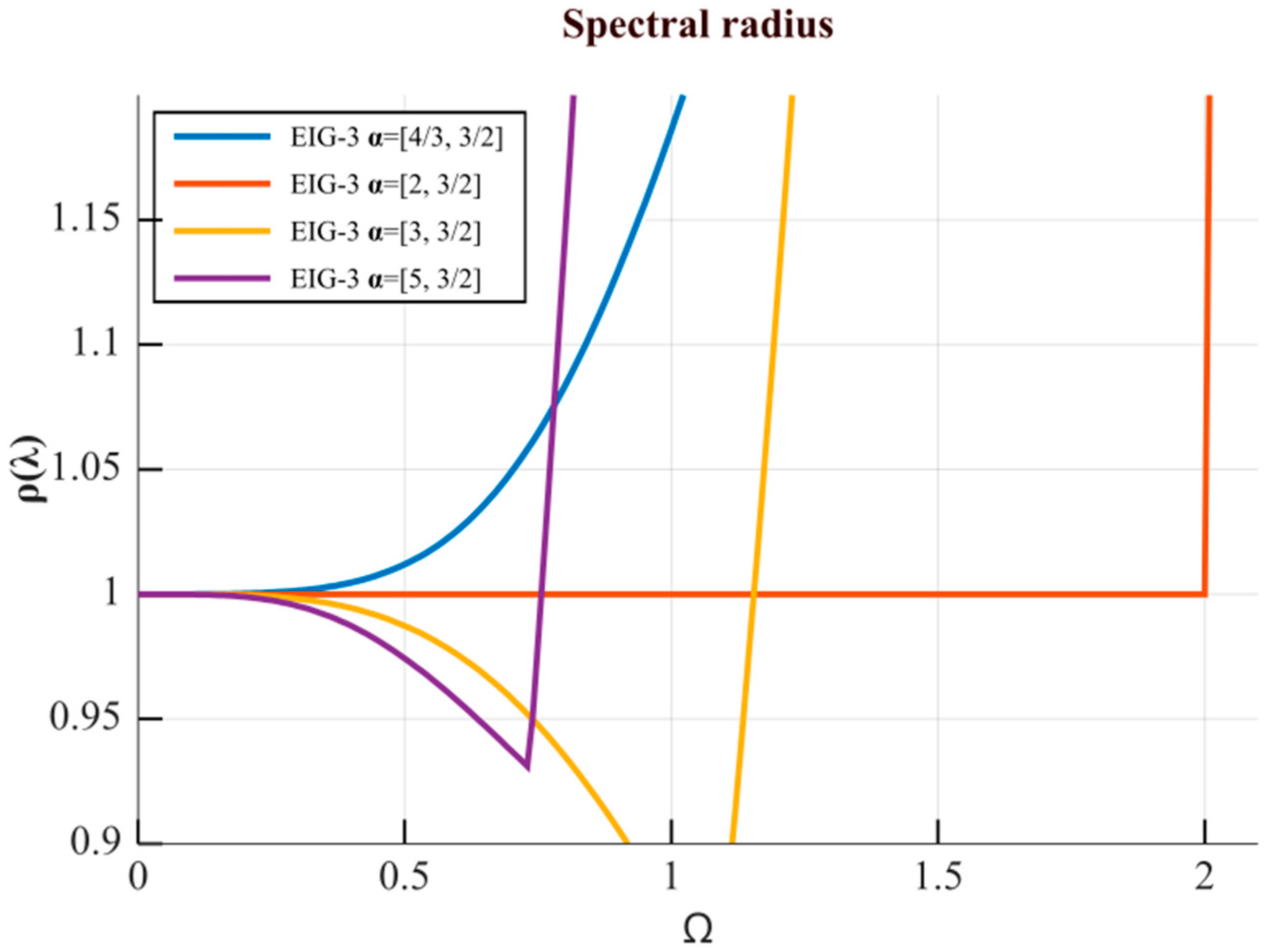 Comparison of spectral radius of different parameters for EIG-3 configurations.