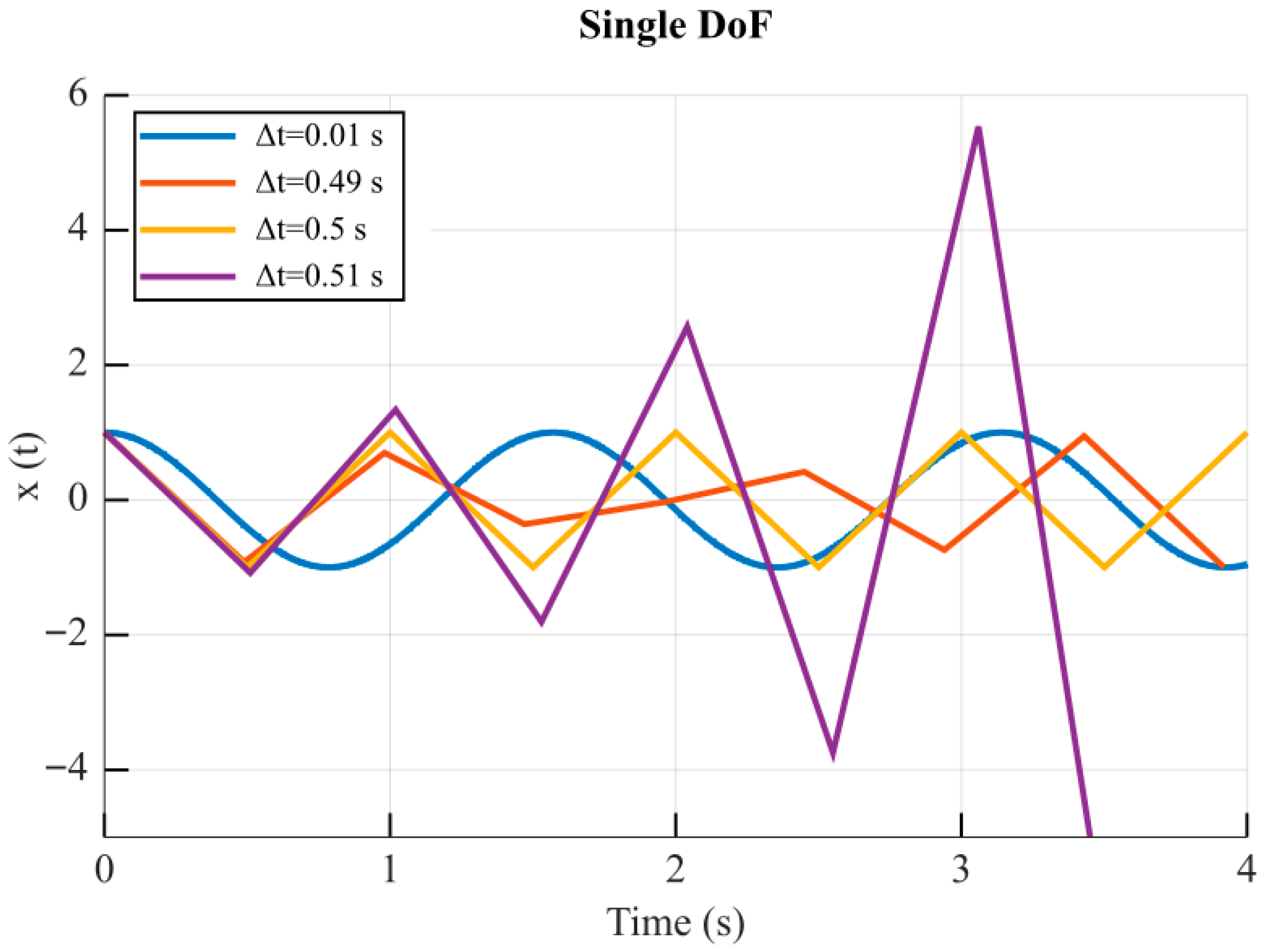 - Kim, W. A simple explicit single step time integration algorithm for structural dynamics. Int. J. Numer. Methods Eng. 2019, 119, 383–403. [Google Scholar] [CrossRef]