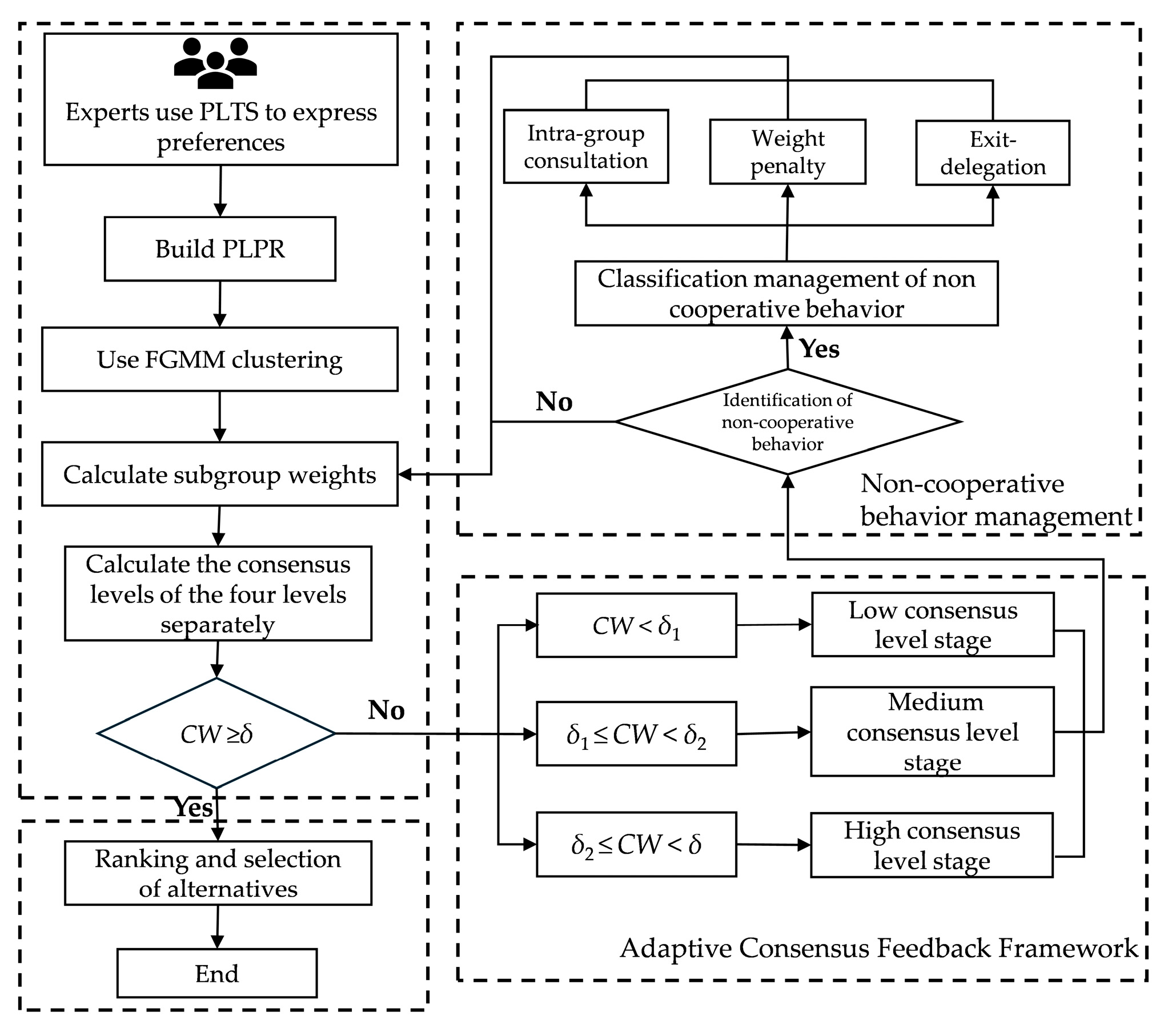 - Tang, M.; Liao, H.; Mi, X.; Lev, B.; Pedrycz, W. A Hierarchical Consensus Reaching Process for Group Decision Making with Noncooperative Behaviors. Eur. J. Oper. Res. 2021, 293, 632–642. [Google Scholar] [CrossRef]