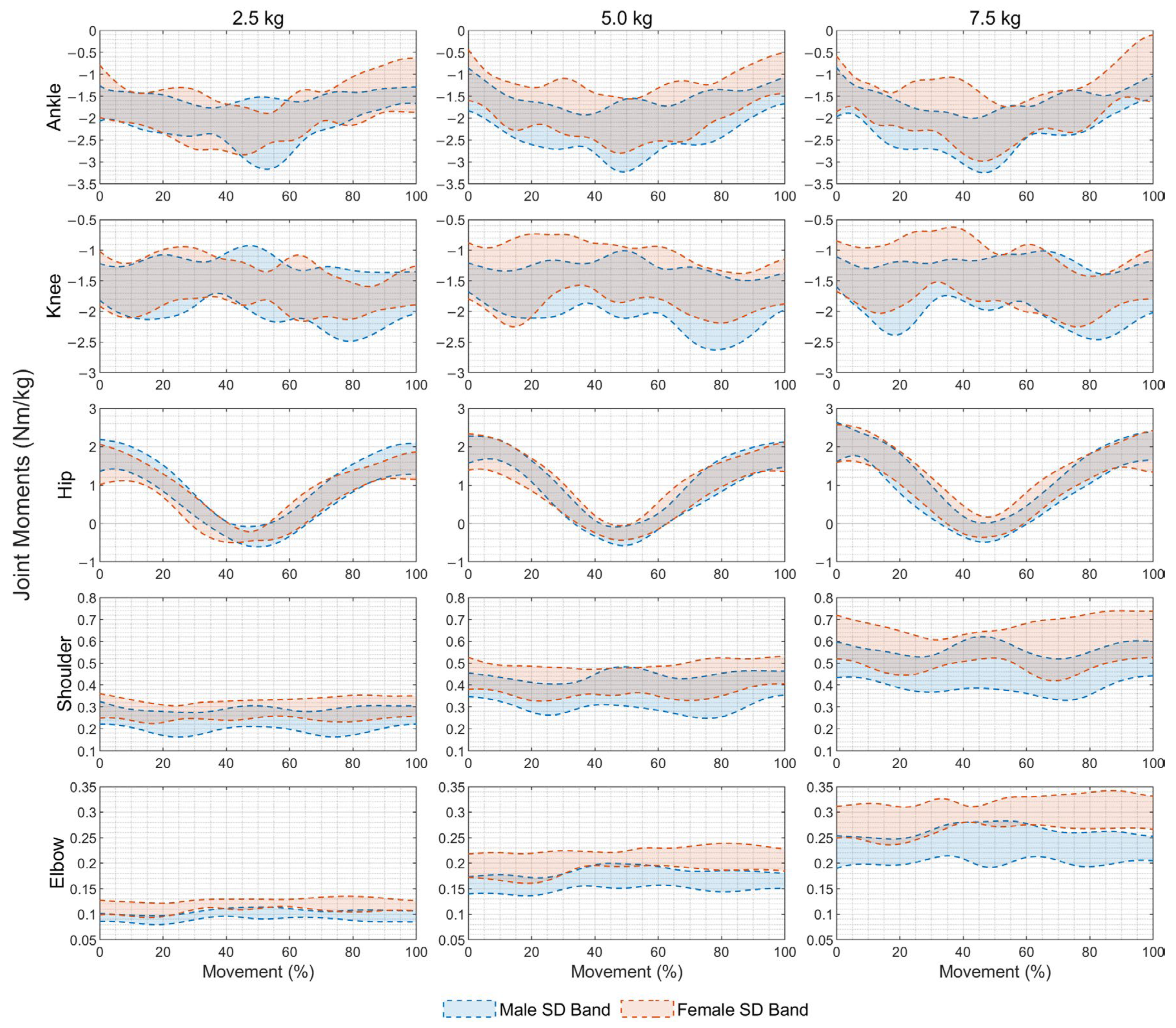 - Dranetz, J.; Chen, S.; Choi, H. Impact of model geometry and joint center locations on inverse kinematic/dynamic predictions: A comparative study of sexually dimorphic models. J. Biomech. 2024, 169, 112147. [Google Scholar] [CrossRef] [PubMed]