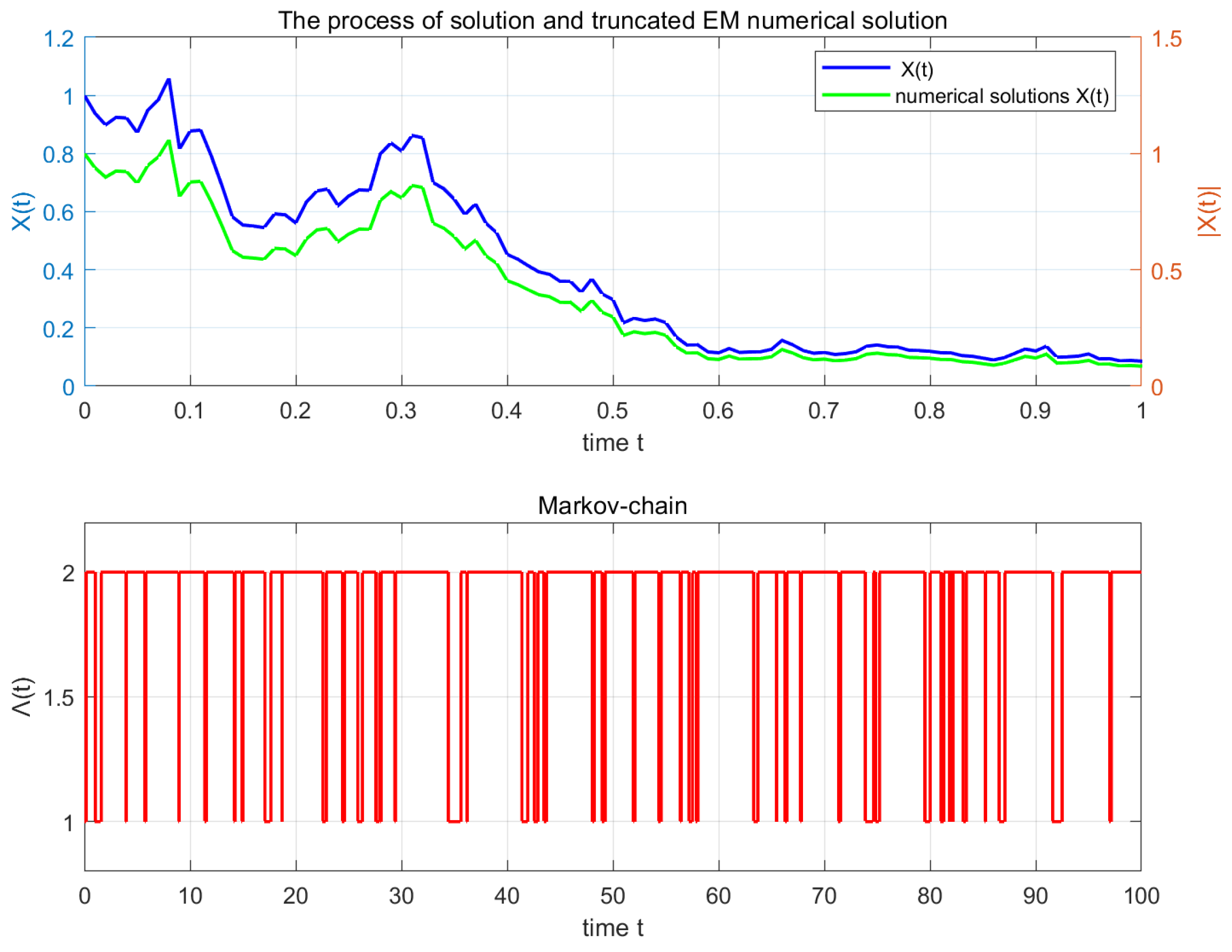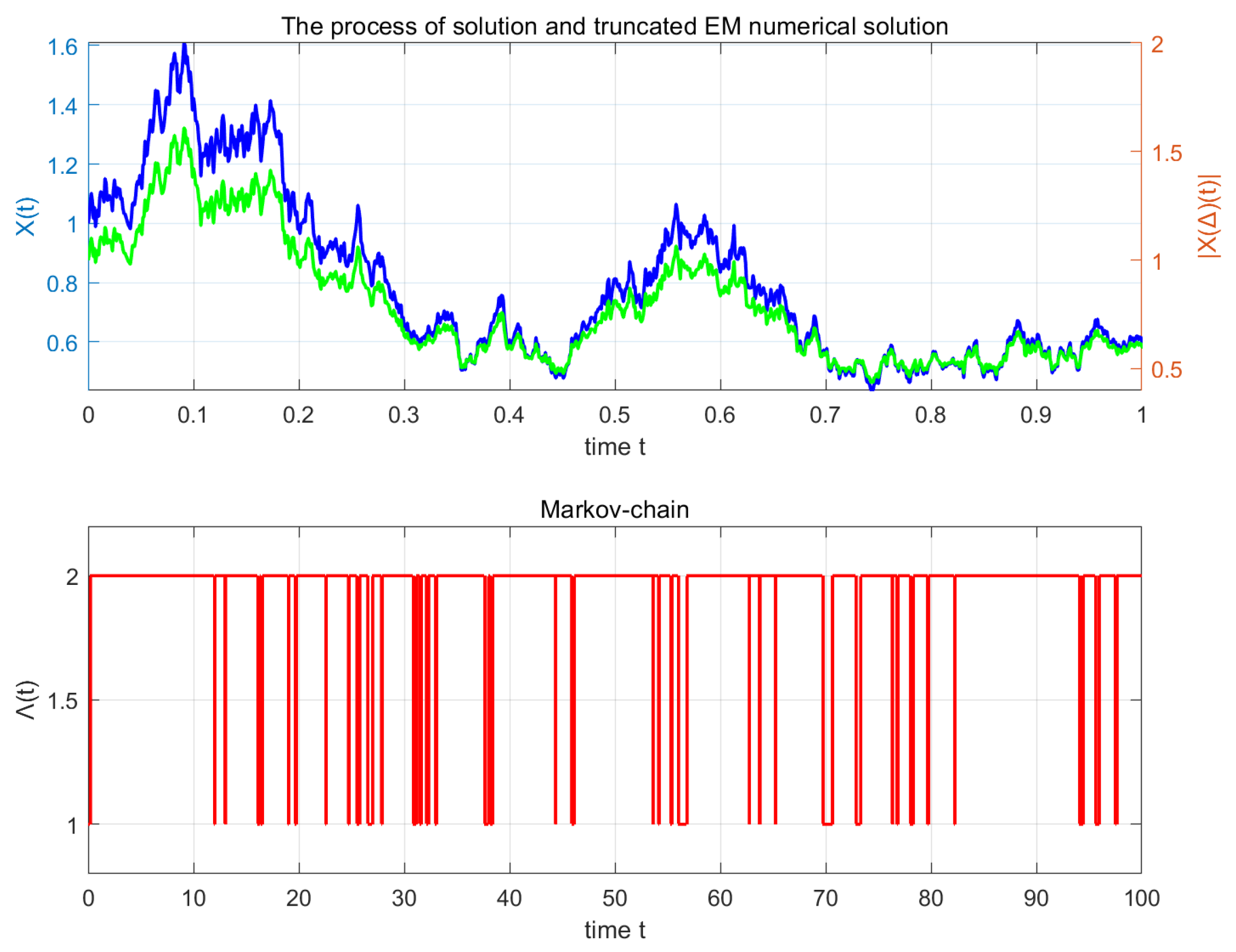 is large, the truncation operation is rarely triggered, and the numerical solution is almost equivalent to the result of the standard EM method. In the trajectory, the combination of the periodic fluctuation brought by
