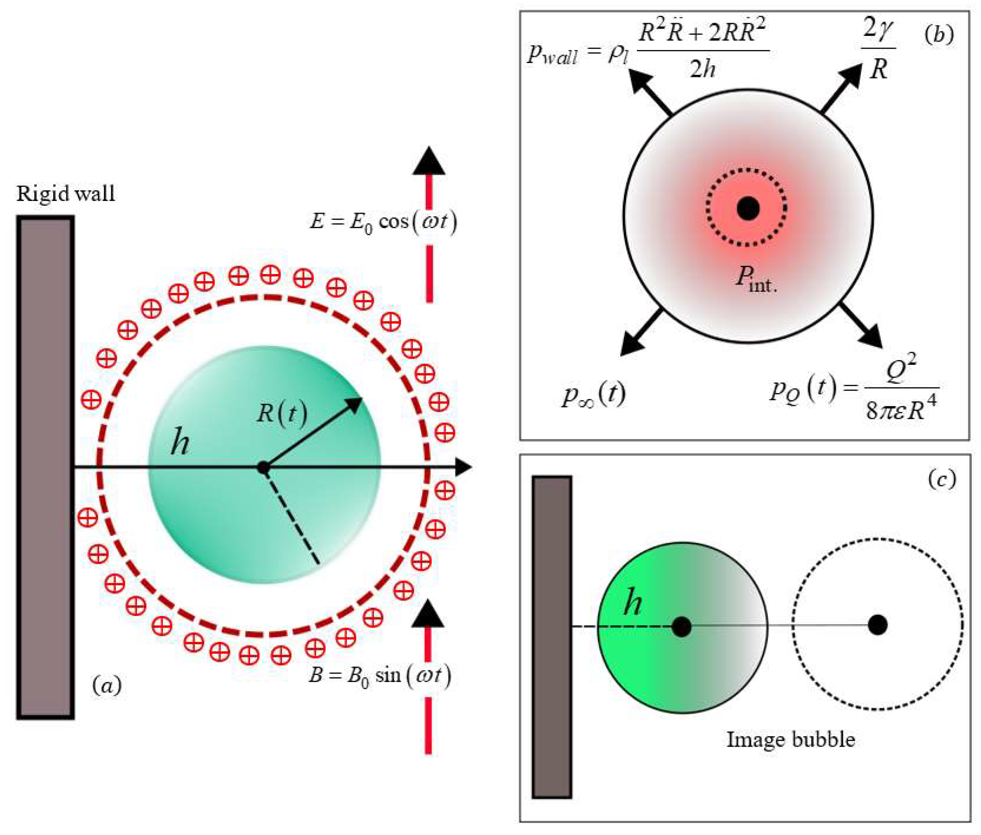 - Deng, J.-J.; Yang, R.-F.; Lu, H.-Q. Dynamics of Nonspherical Bubble in Compressible Liquid under the Coupling Effect of Ultrasound and Electrostatic Field. Ultrason. Sonochem. 2021, 71, 105371. [Google Scholar] [CrossRef] [PubMed]