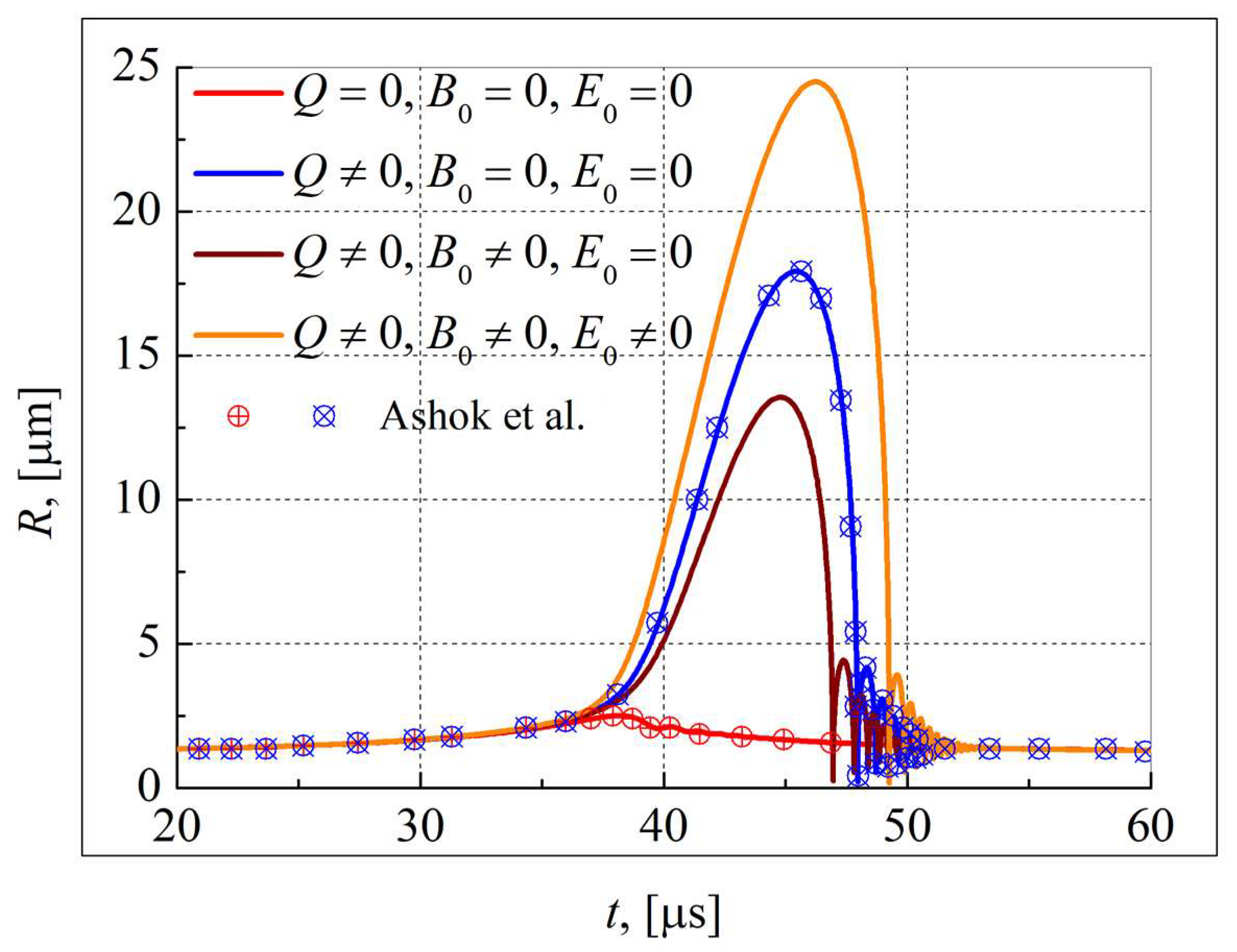 - Abu-Nab, A.K.; Hakami, A.M.; Abu-Bakr, A.F. Charged Cavitation Multibubbles Dynamics Model: Growth Process. Mathematics 2024, 12, 569. [Google Scholar] [CrossRef]