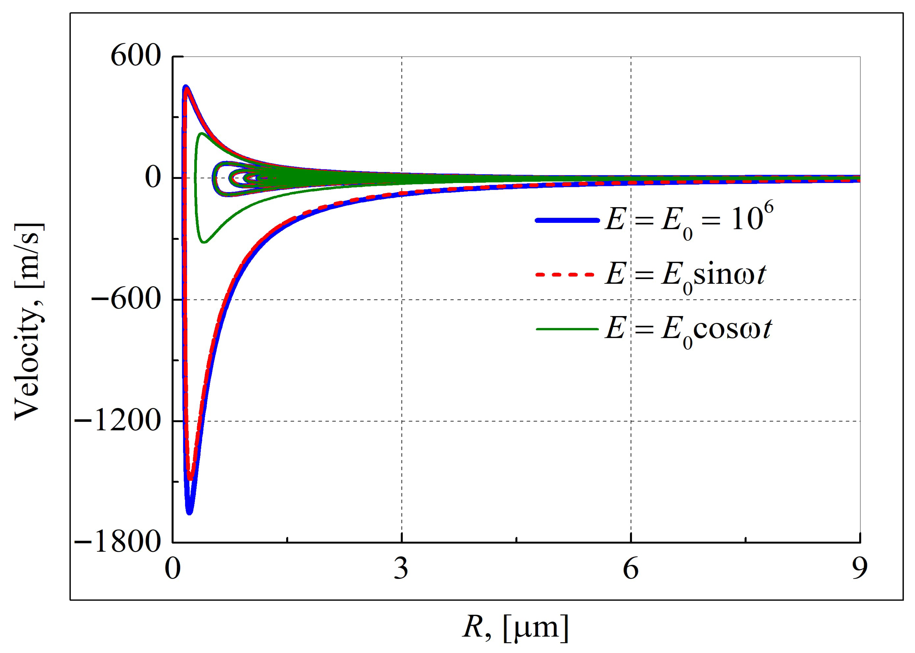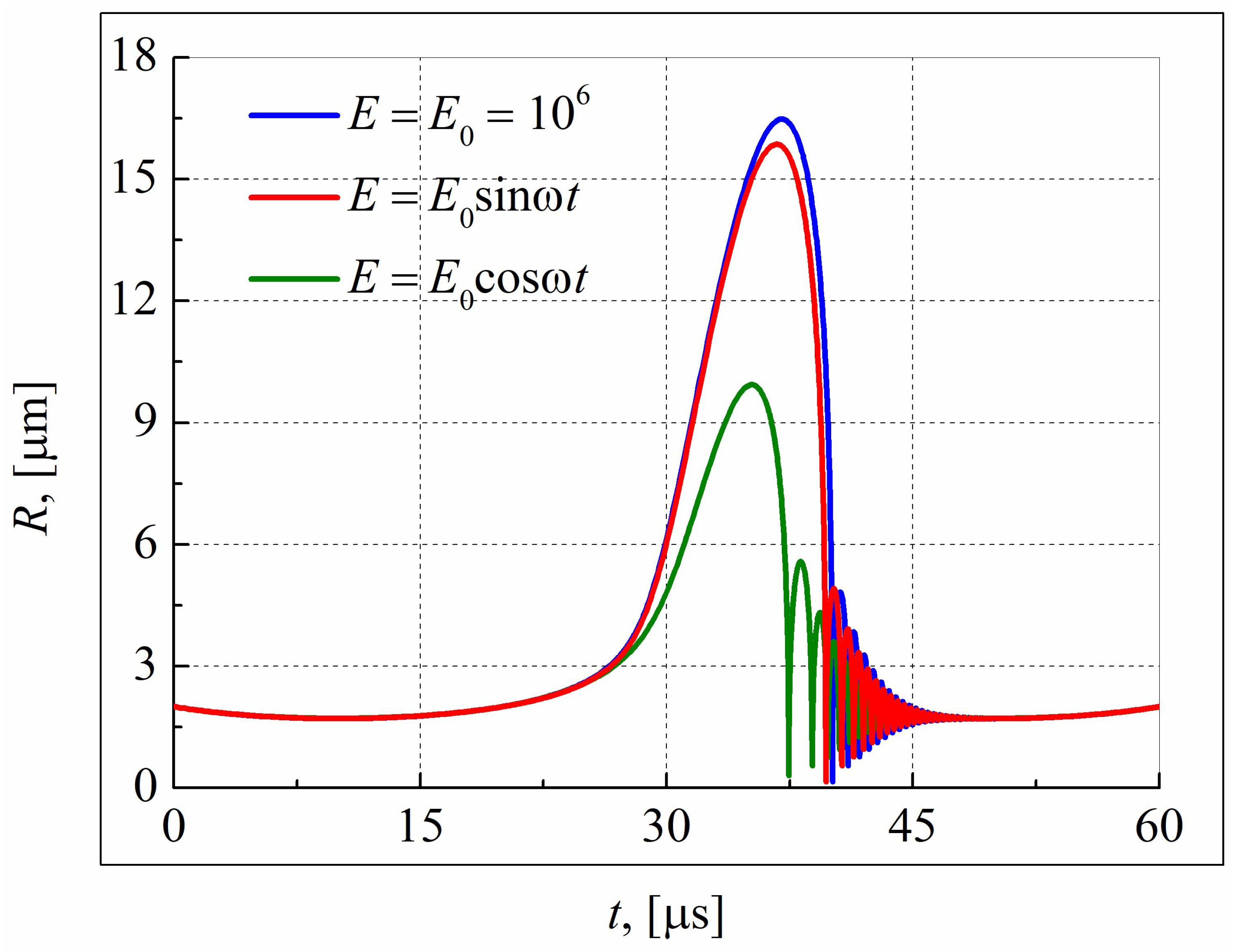 3.5. Keller–Miksis Equation in Electromagnetic Field