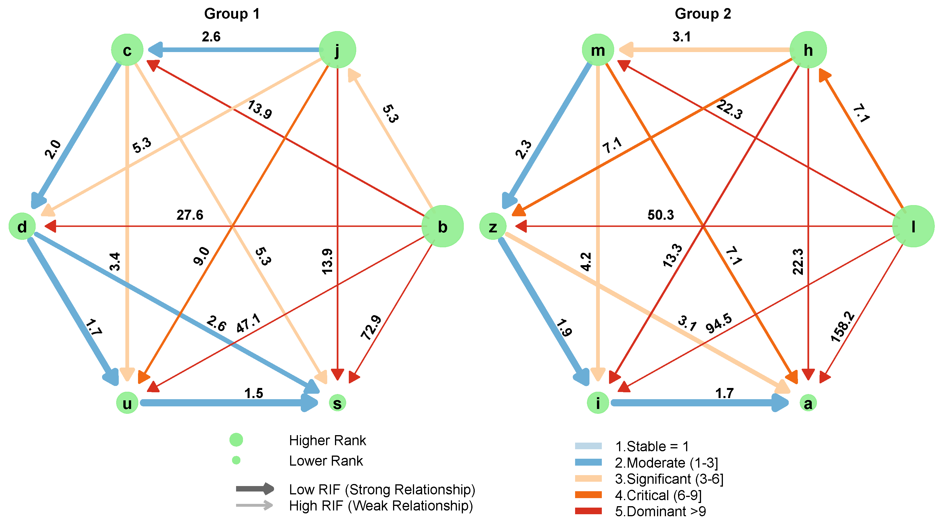s), and edge thickness reflects the RIF value