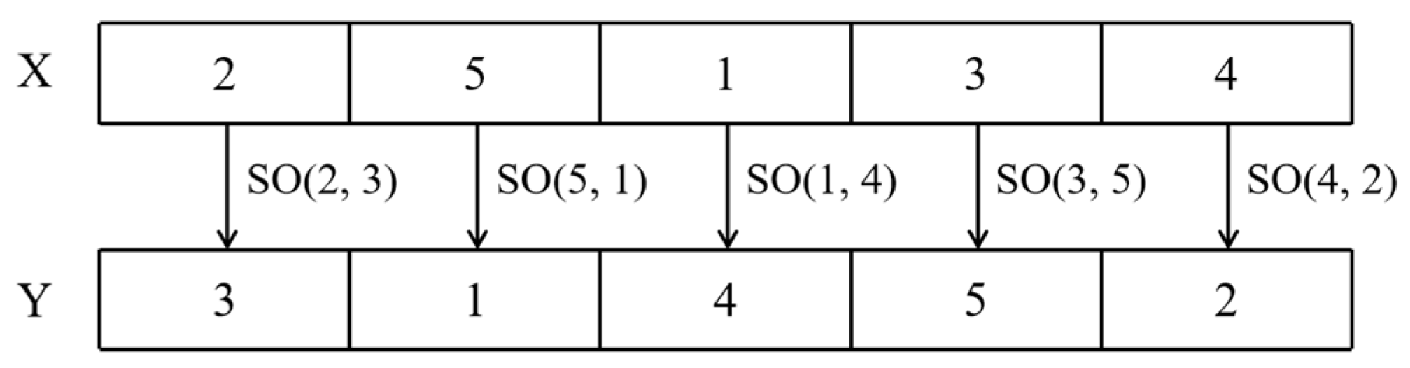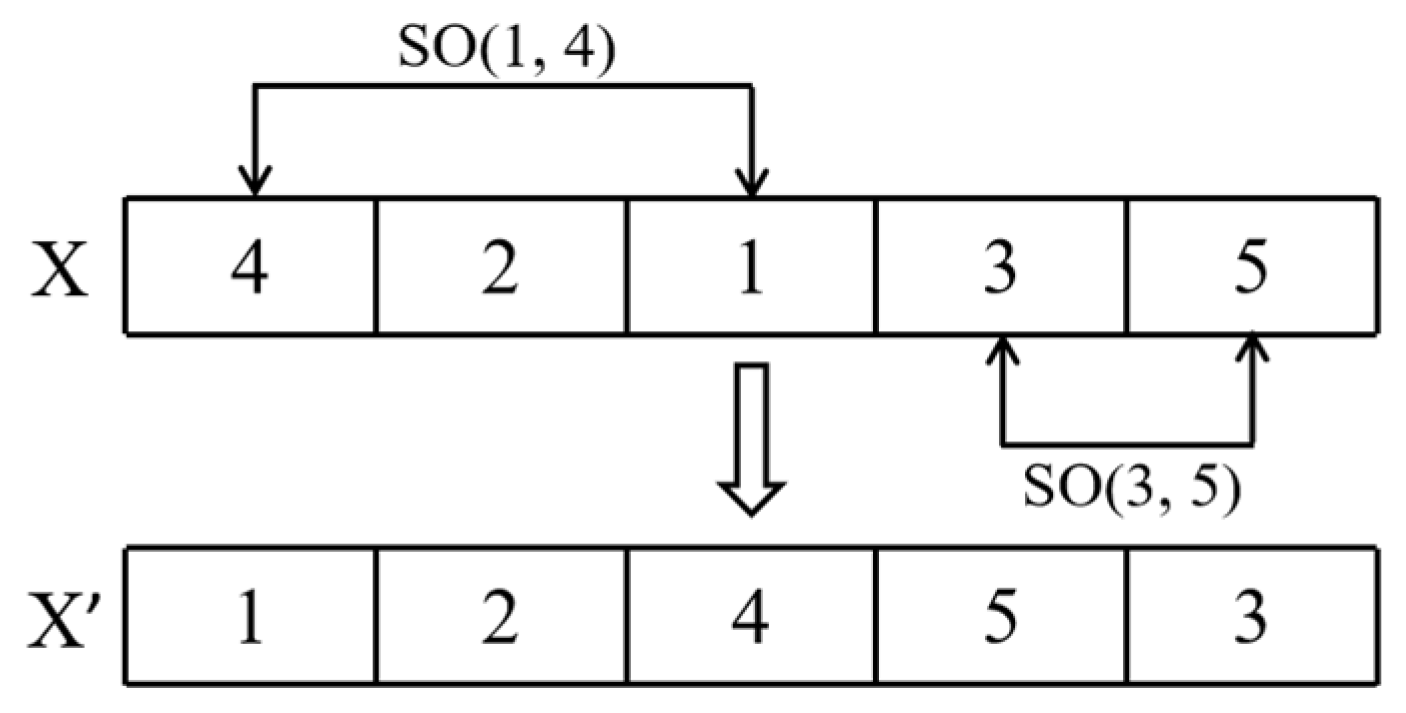 Figure 8 shows a schematic diagram of executing SS = [SO(1, 4), SO(3, 5)] on the sequence X = (4, 2, 1, 3, 5).