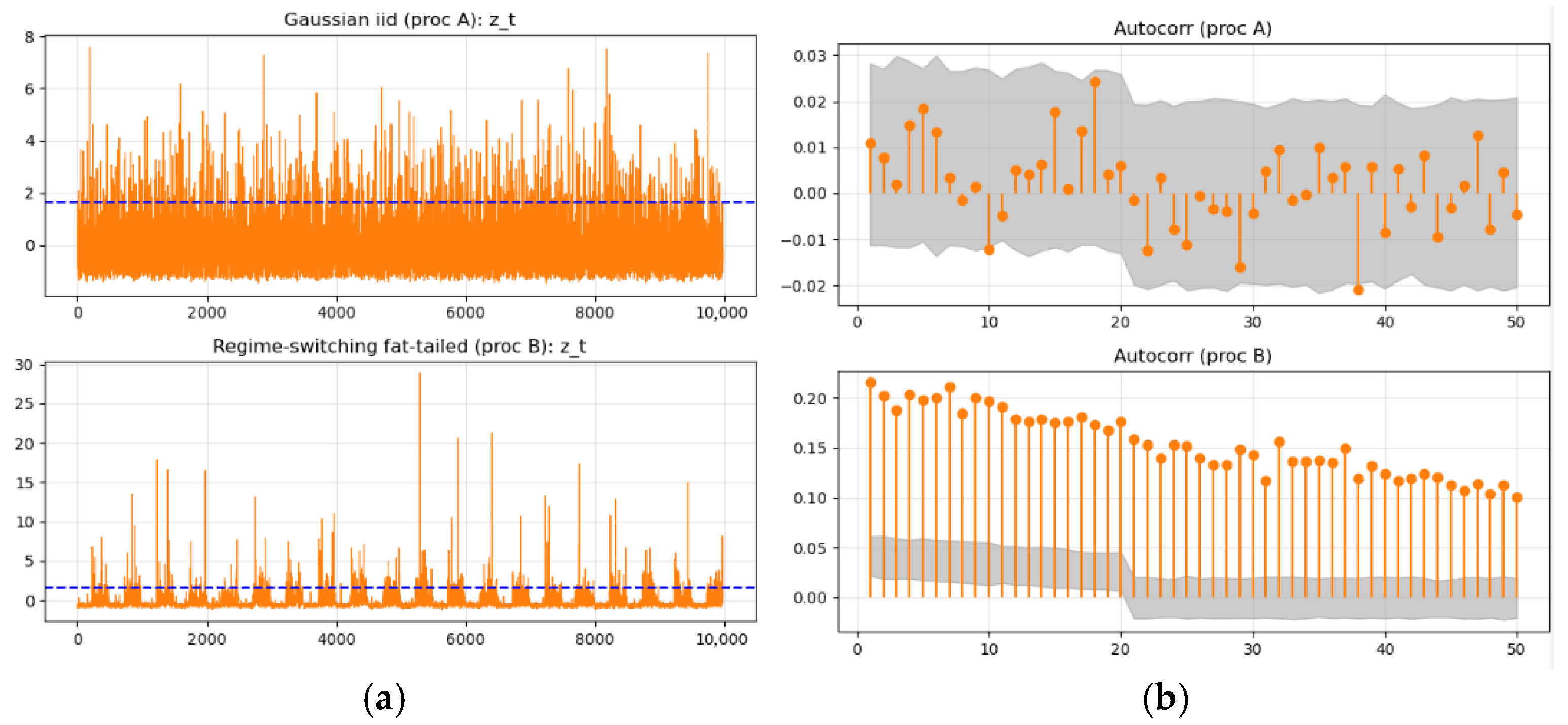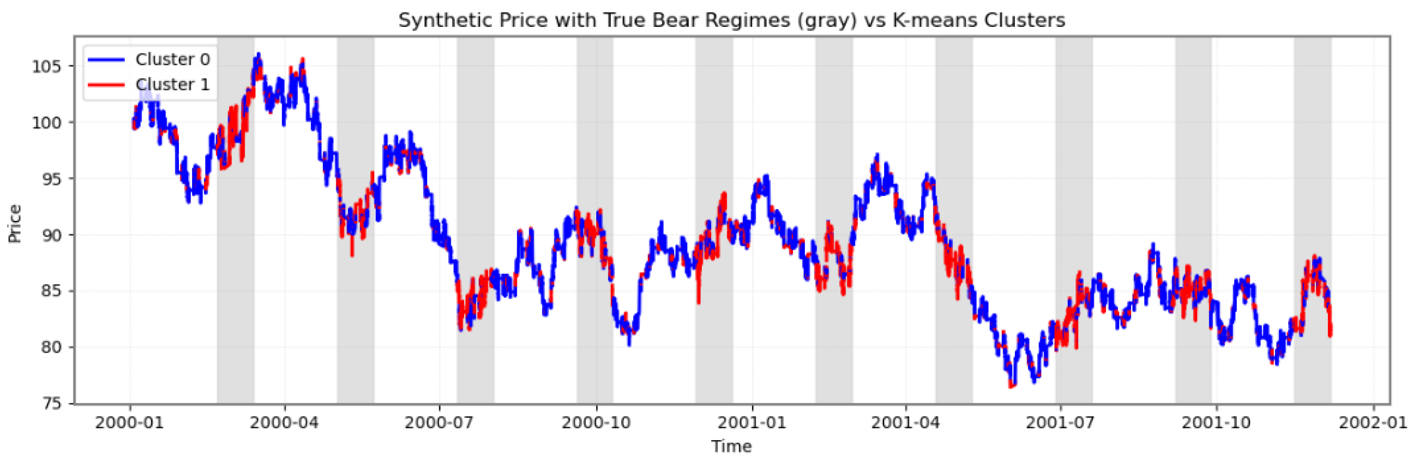 - Clustering label null: Regime assignments arise from random labeling rather than persistent structure.