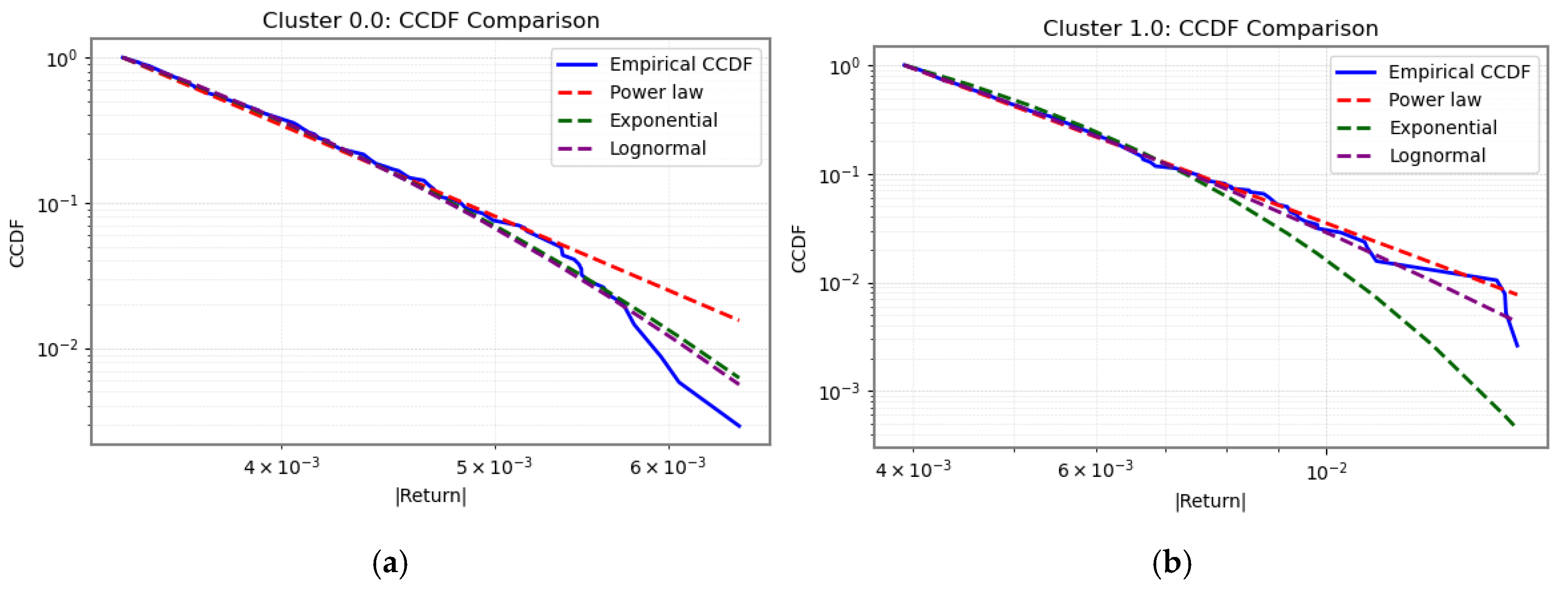 3.9. Left-Tail Power-Law Fitting and Distributional Analysis of Cluster Tails