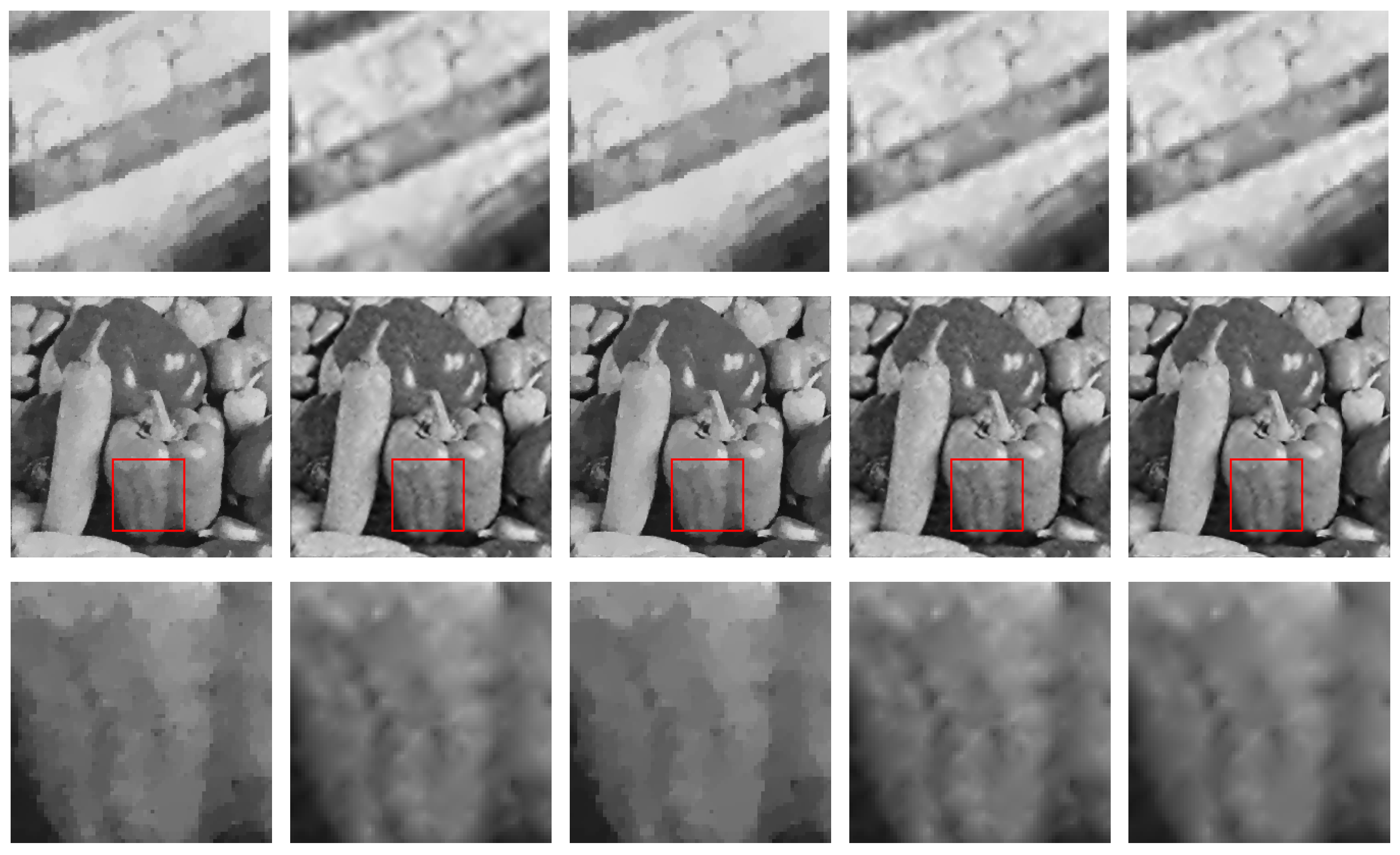 - Fractional-order regularization models: Fractional differential operators with order greater than one possess non-locality and weak singularity [11], enabling them to capture both edge and texture details simultaneously. Models based on fractional-order TV (FOTV) have demonstrated unique advantages in suppressing staircase effects while preserving textures [12,13,14,15]. Moreover, FOTV has been shown to better preserve image contrasts compared to the standard TV model [6]. Nevertheless, as noted by Chen et al. [16], the denoising performance of pure fractional-order TV models on images with high noise levels still requires improvement.