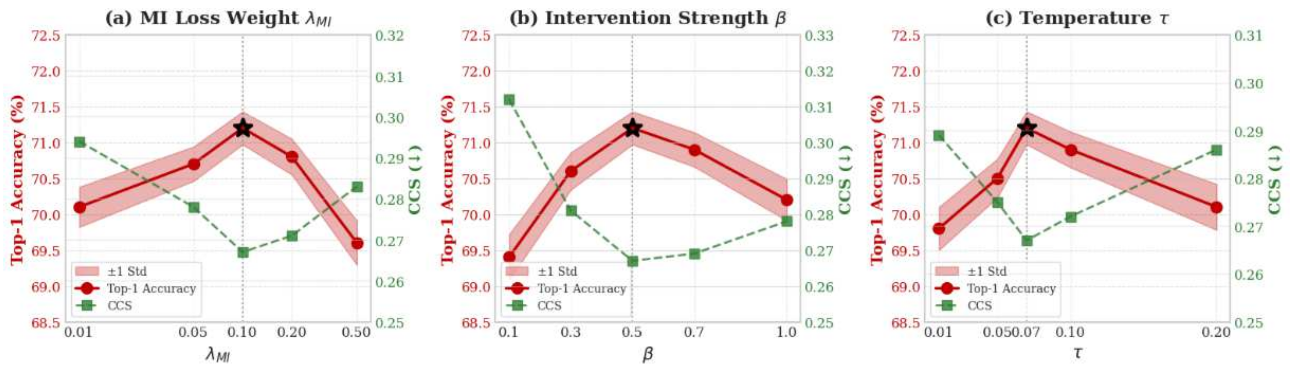 Causal validity: This is because reduced dependency on confounders (41.5% CCS reduction) guarantees that the model is responsive to true movement changes and not artifacts of the environment, which is necessary under clinical conditions where the background, lighting, and camera composition can be different among sessions.