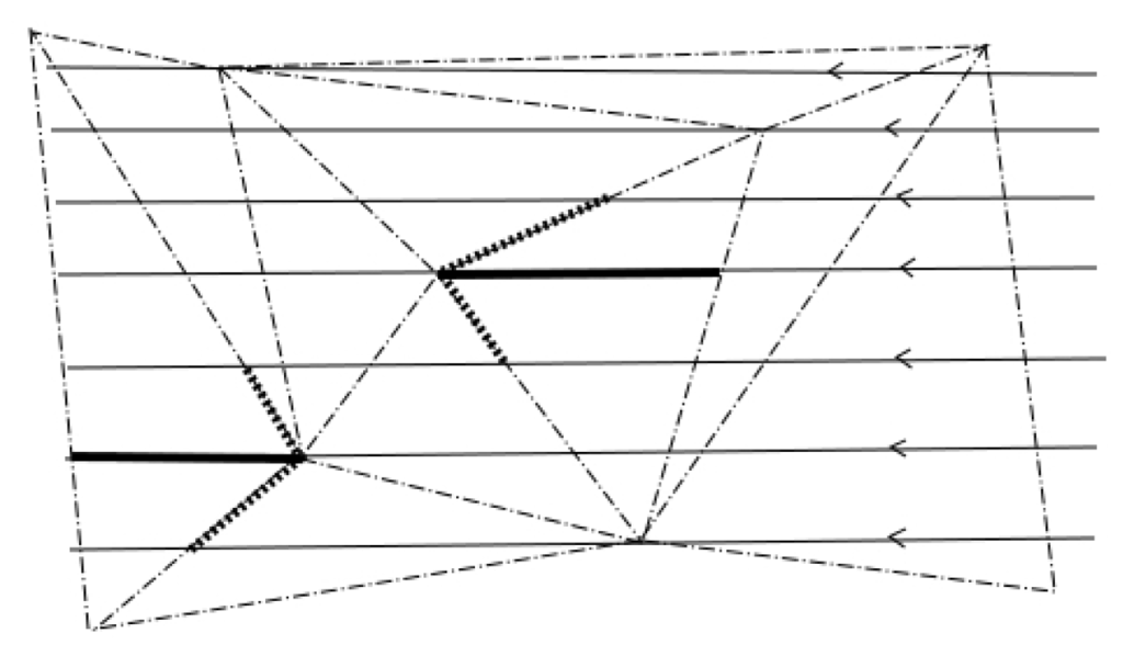 Transverse intersection of a planar foliation with a 3-simplex in general position.