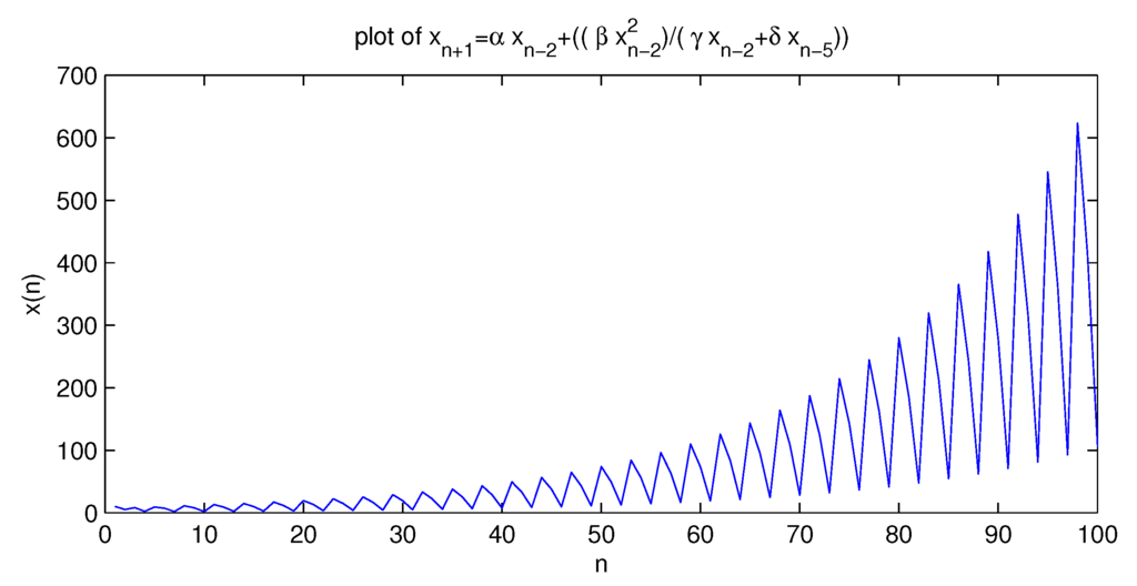- El-Moneam, M.A. On the dynamics of the solutions of the rational recursive sequences. Br. J. Math. Comput. Sci. 2015, 5, 654–665. [Google Scholar] [CrossRef] [PubMed]