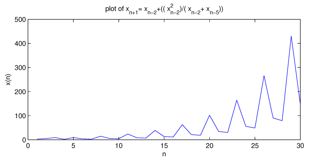 - Elsayed, E.M.; Ibrahim, T. F. Solutions and periodicity of a rational recursive sequences of order five. Bull. Malays. Math. Sci. Soc. 2015, 38, 95–112. [Google Scholar] [CrossRef]