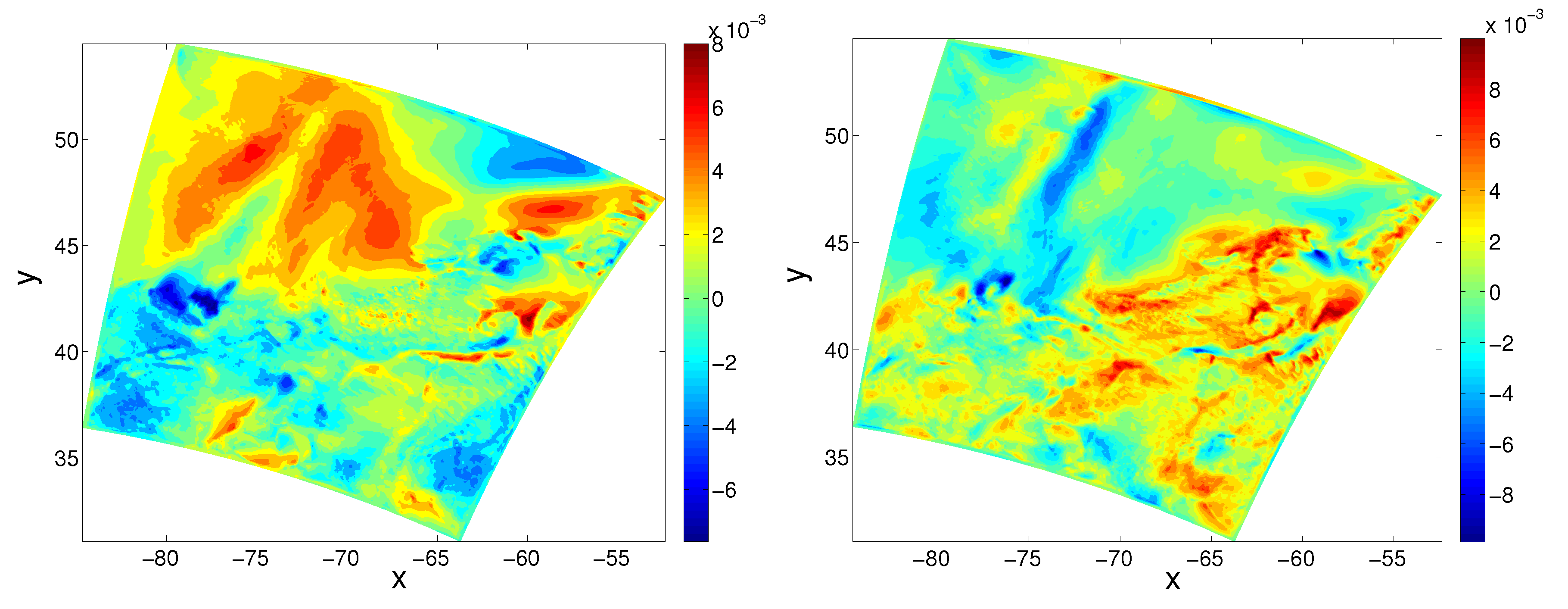 Contour plots of the first (left) and second (right) POD mode.