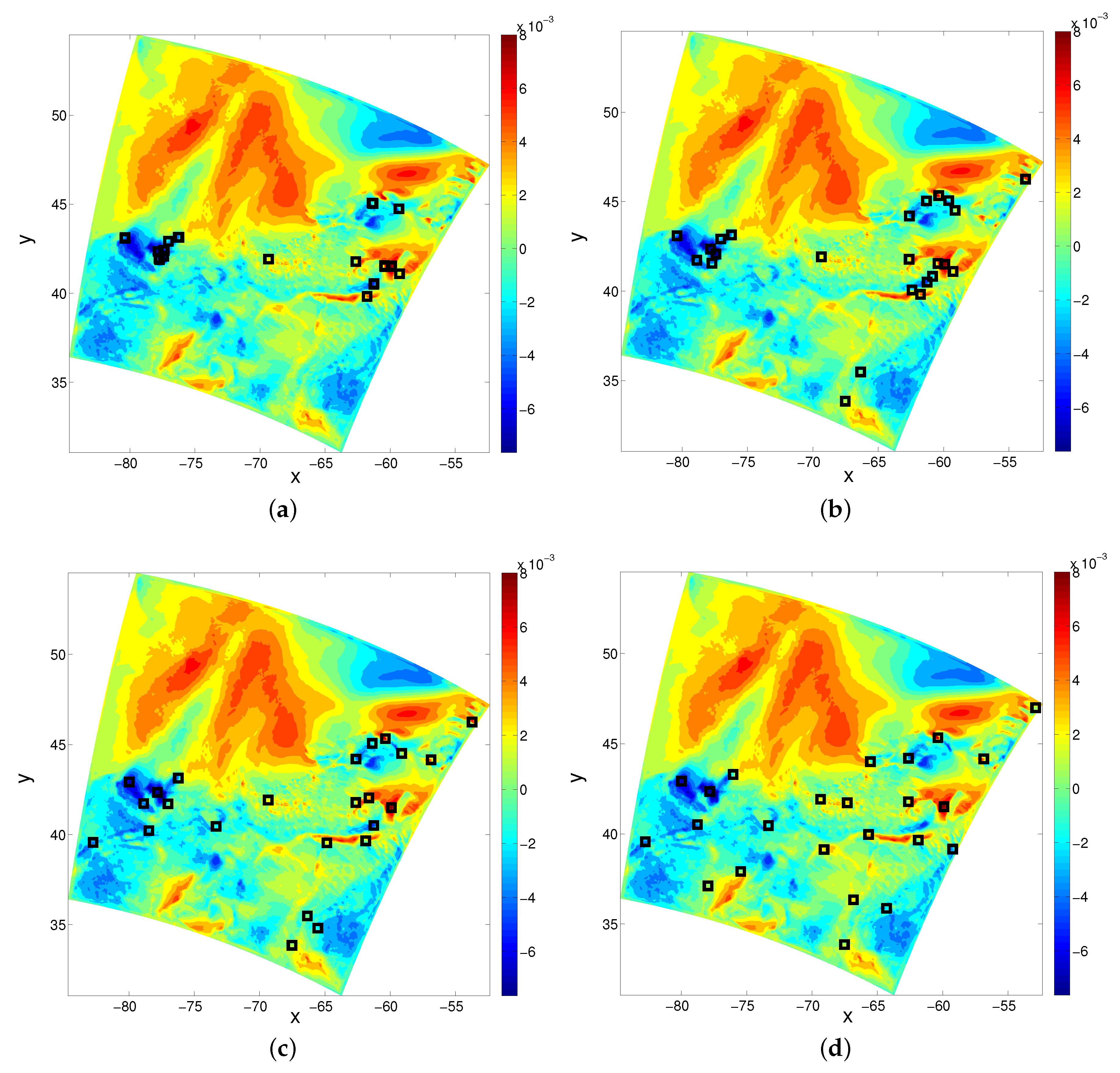 - Yildirim, B.; Chryssostomidis, C.; Karniadakis, G.E. Efficient sensor placement for ocean measurement using low-dimensional concepts. Ocean Modelling 2009, 27, 160–173. [Google Scholar] [CrossRef]