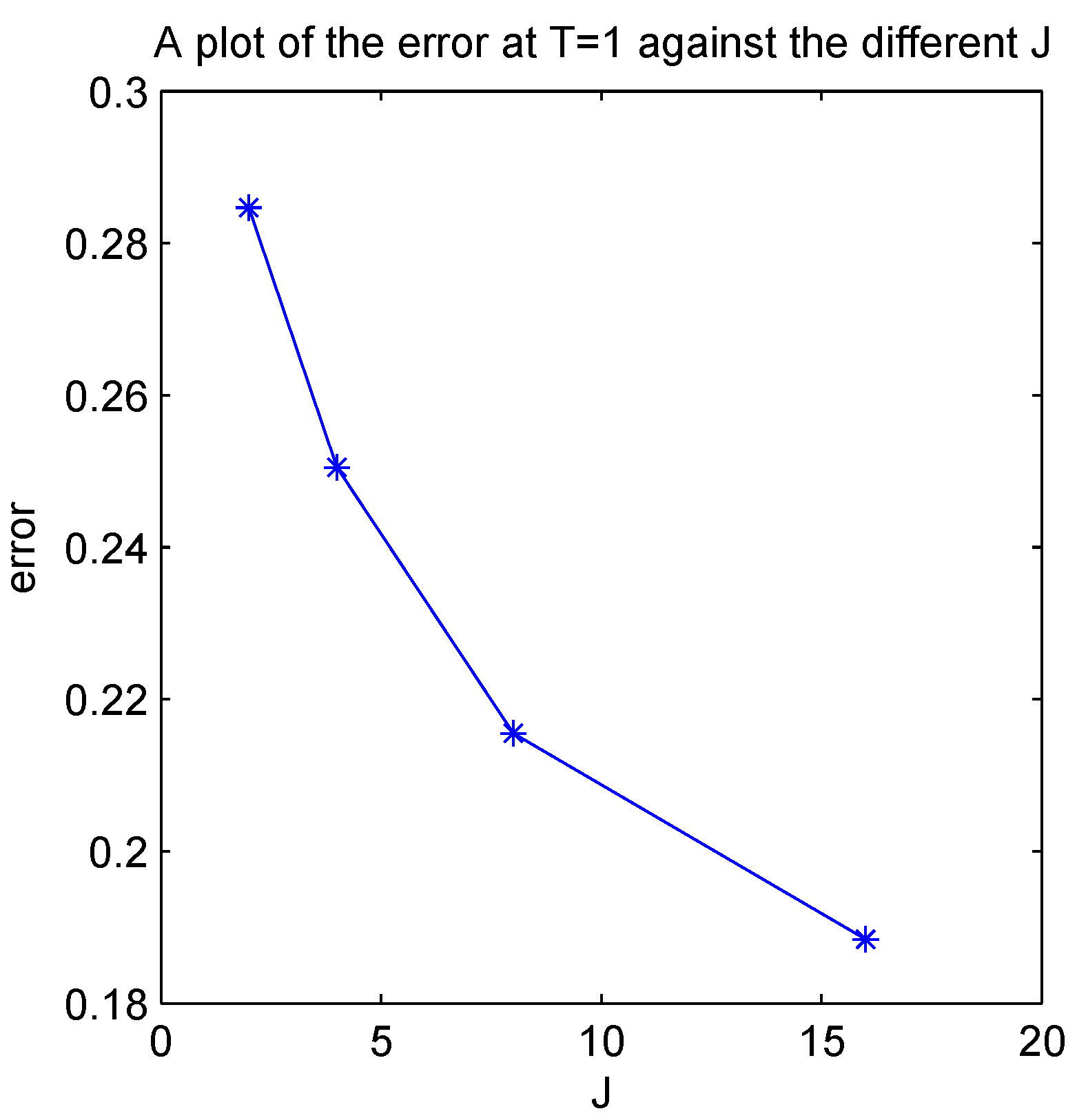 A plot of the error at against the J.