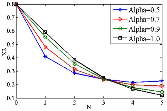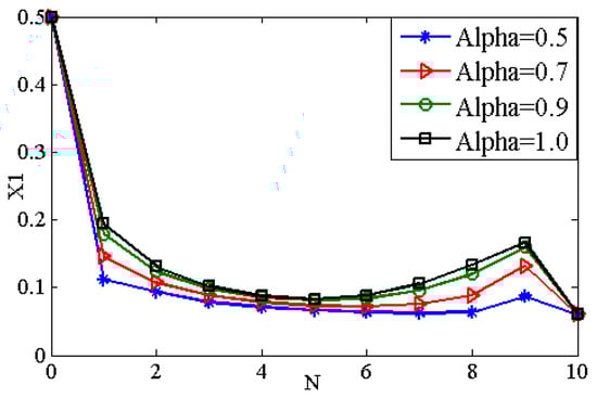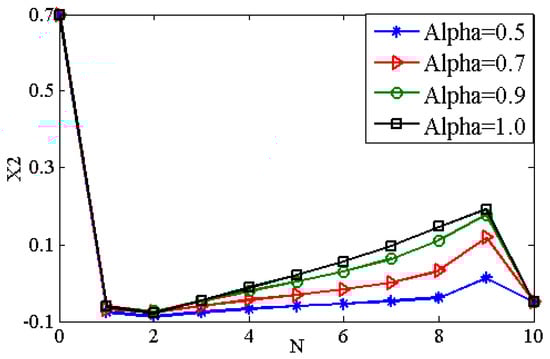 Consider a fractional discrete-time system (Equation (4)) with []: