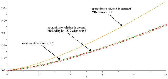where in an unknown auxiliary parameter is entered into the variational iteration Formula (10). The sequential approximate solutions contain the auxiliary parameter h. The auxiliary parameter functions in such a way that ensures the veracity of the method and that approximation converges to the exact solution. Of course, the parameter h of how to ensure convergence depends on selecting the appropriate value of h that will be explained at the end of the next section.