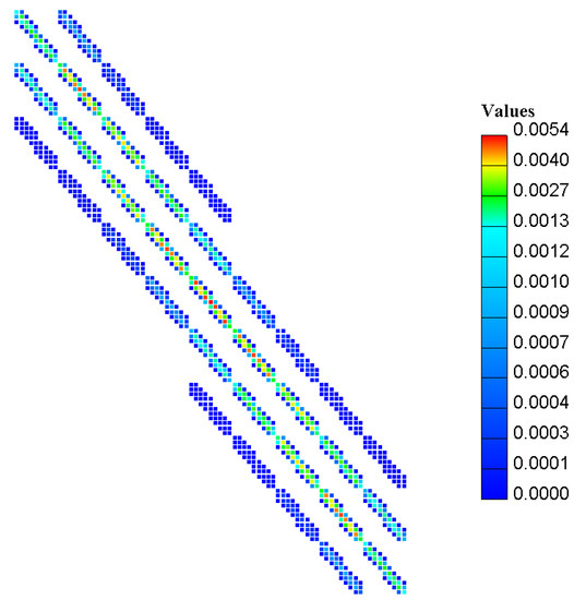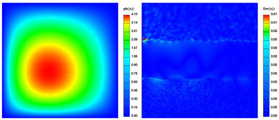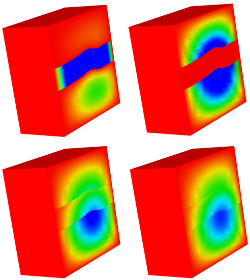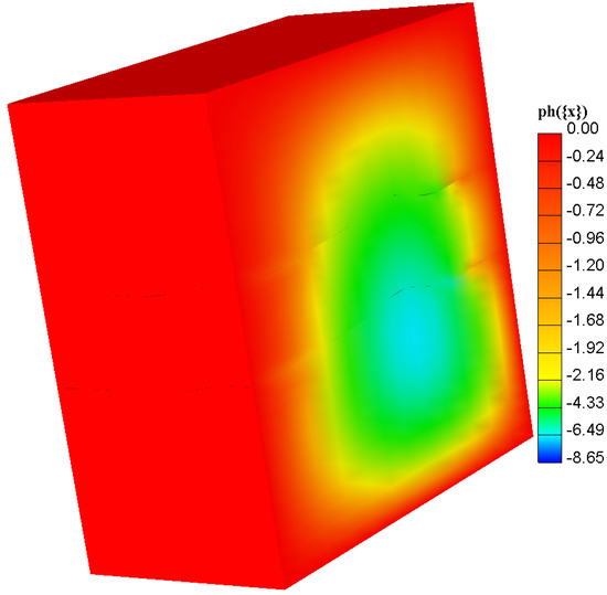 Figure 11 pictures the final parallel answer, which agrees well with the above-assumed pressure. The -error for the Dirichlet subdomain is about 3.60 × 10, and for the Neumann improves to 4.05 × 10. The resulting error values are small related to the magnitude of p.