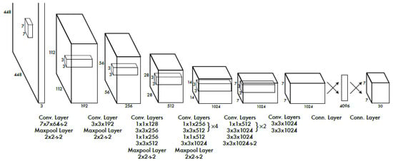 You Only Look Once (YOLO) is a single convolution neural network to predict the bounding boxes and the target categories from full images, which divides the input image into S × S cells and predicts multiple bounding boxes with their class probabilities for each cell. The architecture of YOLO is composed of input layer, convolution layer, pooling layer, fully connected layer and output layer. The convolution layer is used to extract the image features, the full connection layer is used to predict the position of image and the estimated probability values of target categories, and the pooling layer is responsible for reducing the pixels of the slice.
