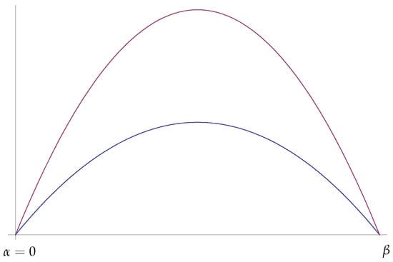 Let  and . It follows from [] that Equation (12) has two solutions such that , provided that for for each , where . Next, we show a sketch of both solutions in Figure 1.