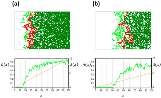 Due to the diversity of the models and of the fields of sciences involved (from ecology through population genetics to evolutionary biology), many terms are used for naming the same, or nearly the same, geometric objects. It would be a matter of a longer review to clarify whether the terms “range margin”, “range edge”, “range boundary”, and “species border” are synonyms, or whether their usage differs for different authors. In this paper, I consistently use “range margin” when I write about a two-dimensional pattern, and “range edge” when I mean a lower-dimensional object (a straight line or a fractal with <2 dimensions). Finally, I present a remark about the metapopulation’s definition. The metapopulation, in general, is a set of local populations connected by the motion of individuals (including the dispersal of offspring). In many studies, the definition implies that the local populations live in discrete habitat patches (e.g., Reference [