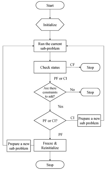 Equation (3) specifies that the cost occurring during period t is limited by an operating working capital limit (OWCL) in that period. The equation was based on the cash-to-cash methodology found in Theodore Farris and Hutchison [54], and Hofmann and Kotzab [55]. Consequently, we assumed that the OWCR for replenishing a unit of product depends on the money invested in the related operations, for example, purchasing, setup, transportation, inventory holding, and shortage costs. Also, as in Bian et al. [24], it is assumed that the profit portion of the sales revenue is not accounted for in the OWCR. Profit can be allocated to other higher priority objectives of the firm (e.g., debt reduction, dividend payments, or internal and external investment). Thus, the profit portion of a firm’s activities was not represented in our model (e.g., Equations (3) and (4)). Equation (4) models monetary flow during two adjacent periods and ensures that the OWCL in period t equals the sum of the operating working capital (OCM) allocated to period t and the money left in the previous period inflated by interest and forwarded to the current period.