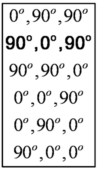 Actuators are normally mounted at the same angle: . By instead mounting the actuators in disparate configurations (e.g., mixed skew angles) , the orientation of the inner region of singularity-free space can be rotated to emphasize a certain maneuver direction (e.g., the yaw direction, which is of primary interest in this study). By rotating momentum planes from ninety degrees to zero degrees, 6 possible reorientations are achieved as listed in Figure 3 and depicted in Figure 4 respectively in the sequence of Figure 3. Simulation and experimental verification of the optimum singularity-free skew angle and mixed skew angle momentum space rotations may be found in references [39,40,41,42,43], but these developments are repeated here as prerequisite knowledge.