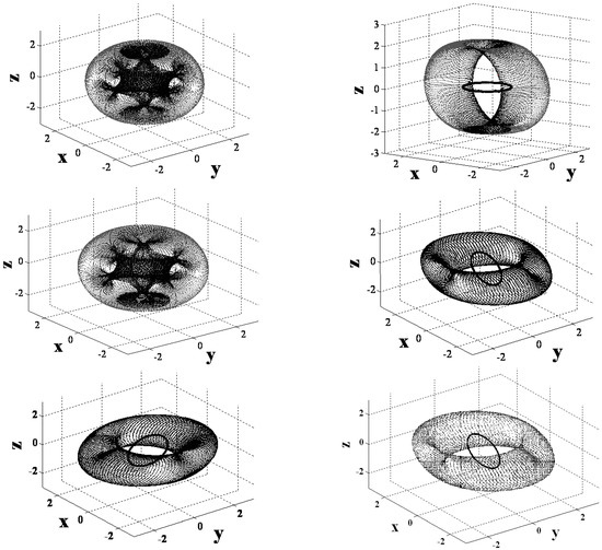 - Tokar, E.N. Problems of gyroscopic stabilizer control. Cosm. Res. 1978, 15, 141–147, (Original: Kosmicheskie Issledovaniya 1978, 16, 179–187). [Google Scholar]