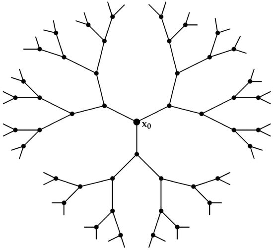 It is easy to compute the number of vertices reachable in step n or in level n starting from the root , which is . The number of vertices of is , and the number of edges of is , as is shown in Figure 1 below.