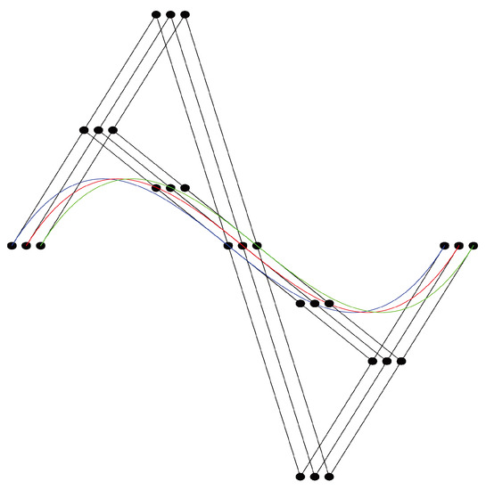 - Farin, G. Curves and Surfaces for CAGD: A Practical Guide, 5th ed.; Morgan Kaufmann: Burlington, MA, USA, 2002. [Google Scholar]